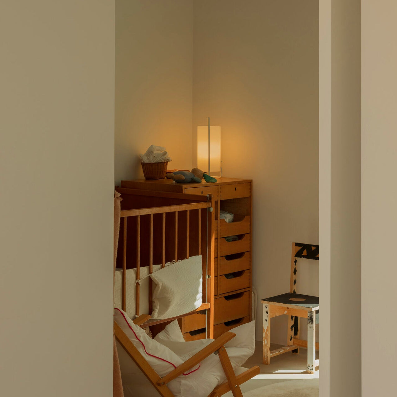 First appearing in 1961, Miguel Milá’s now-classic table lamp finds a single translucent column encircled by a metal frame that incorporates both the stand and carrying handle. Asa comes in an all-white colorway or its original 1961 version, with a matte-black structure and switch. And it’s even glow of diffused LED illumination also proves a timely update.