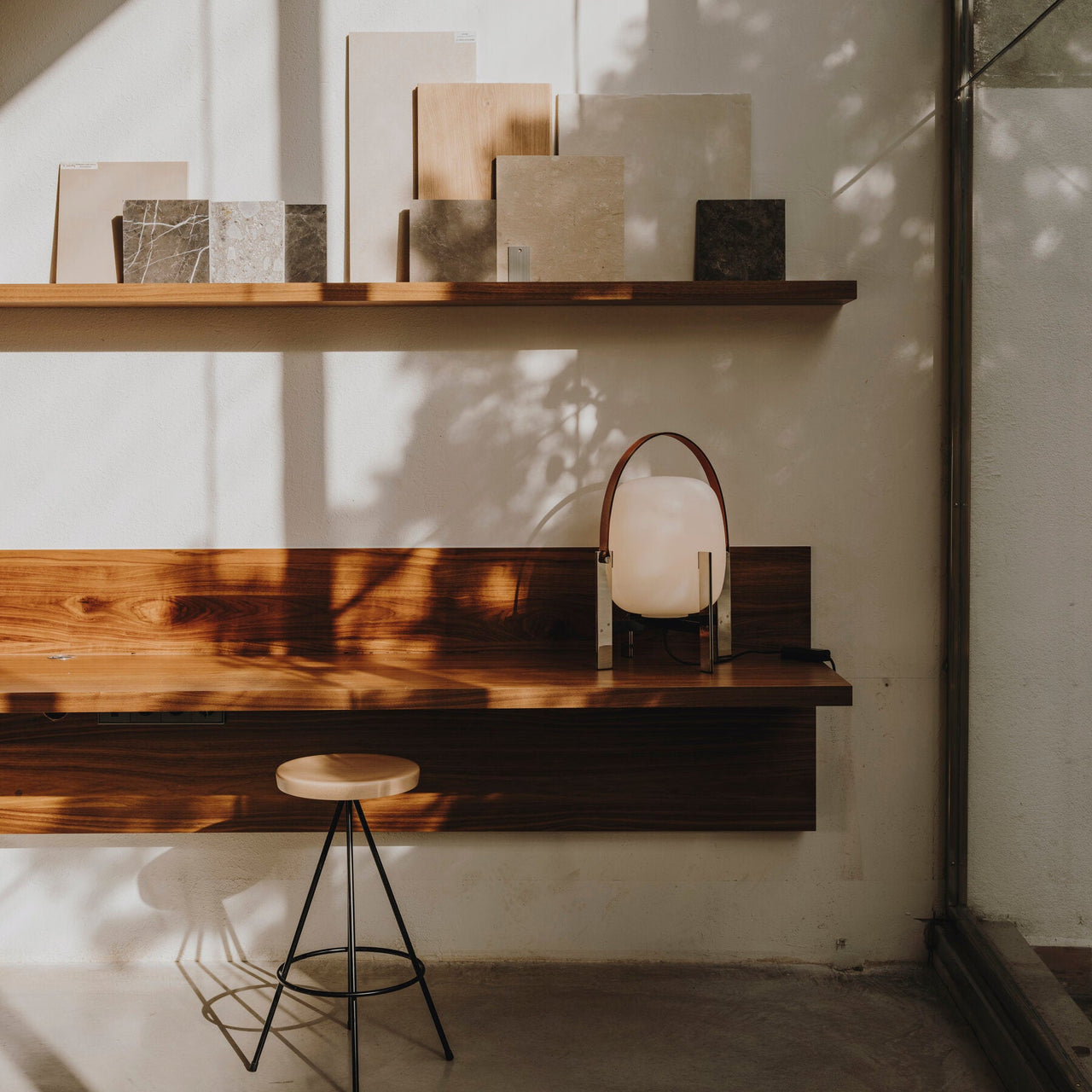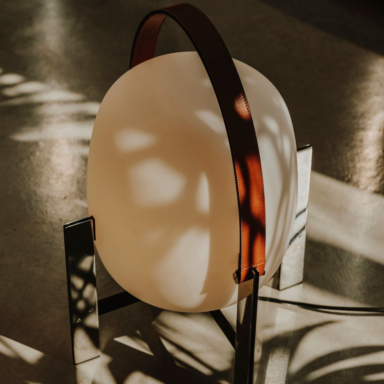 Cesta Metálica Table Lamp: Natural Leather Handle