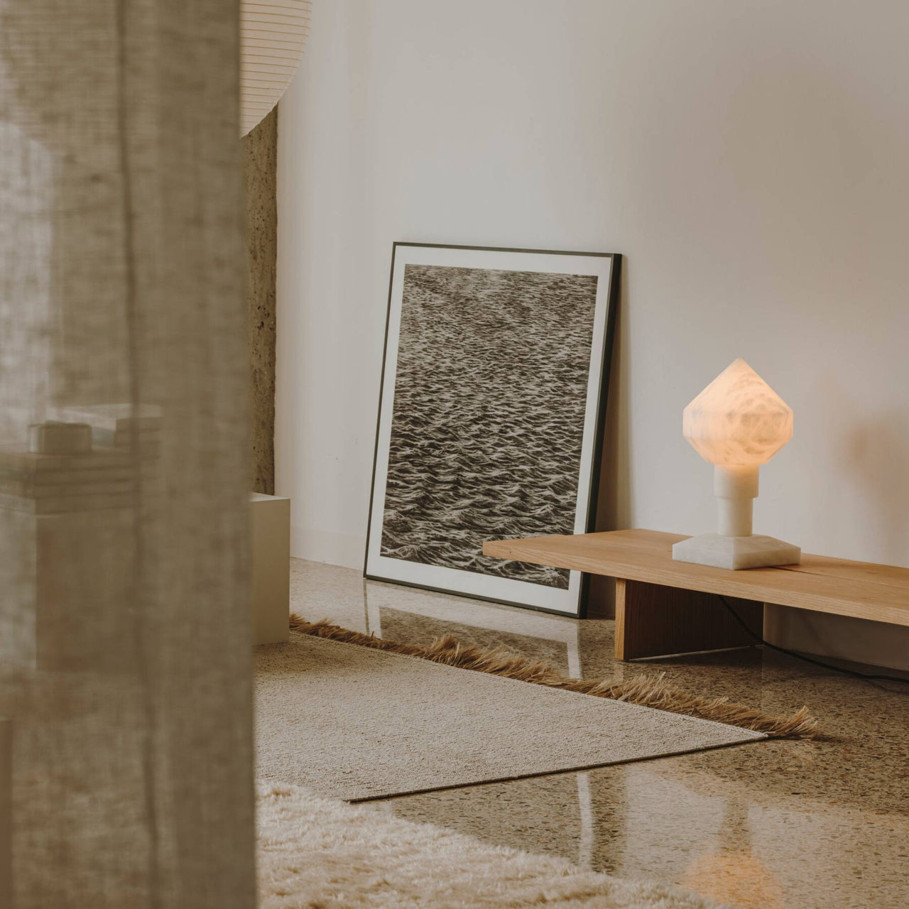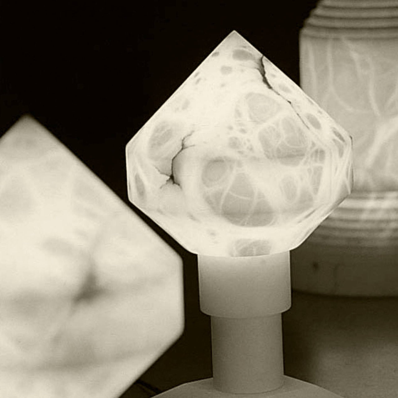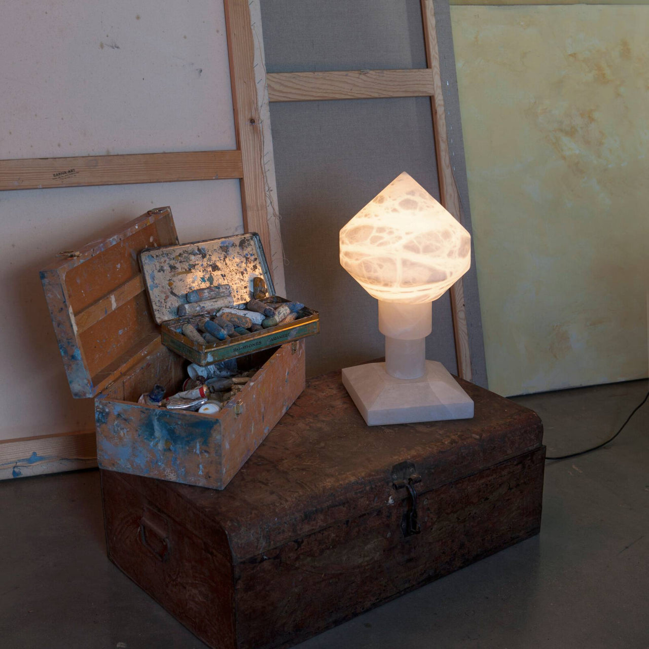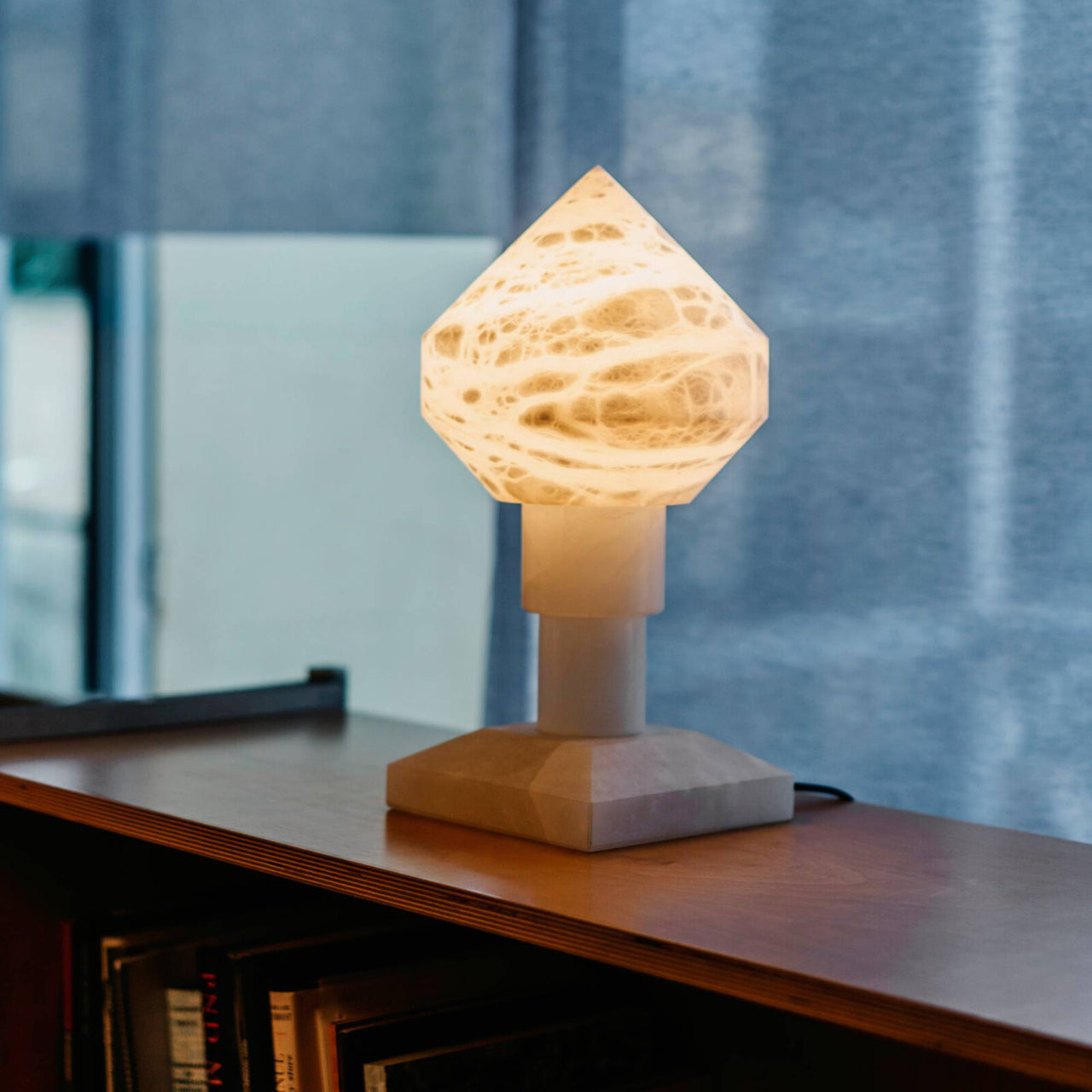 Inspired by an Art Déco design, Zeleste also reflects the exciting era of liberated nightlife in ‘70s Barcelona. Designers Àngel Jové and Santiago Roqueta created the table lamp in alabaster, a translucent stone that gives a very special warmth. Named after the bar where it was first seen, the lamp’s iconic shape and warm glow usher in a mood of sociable nighttime intimacy.