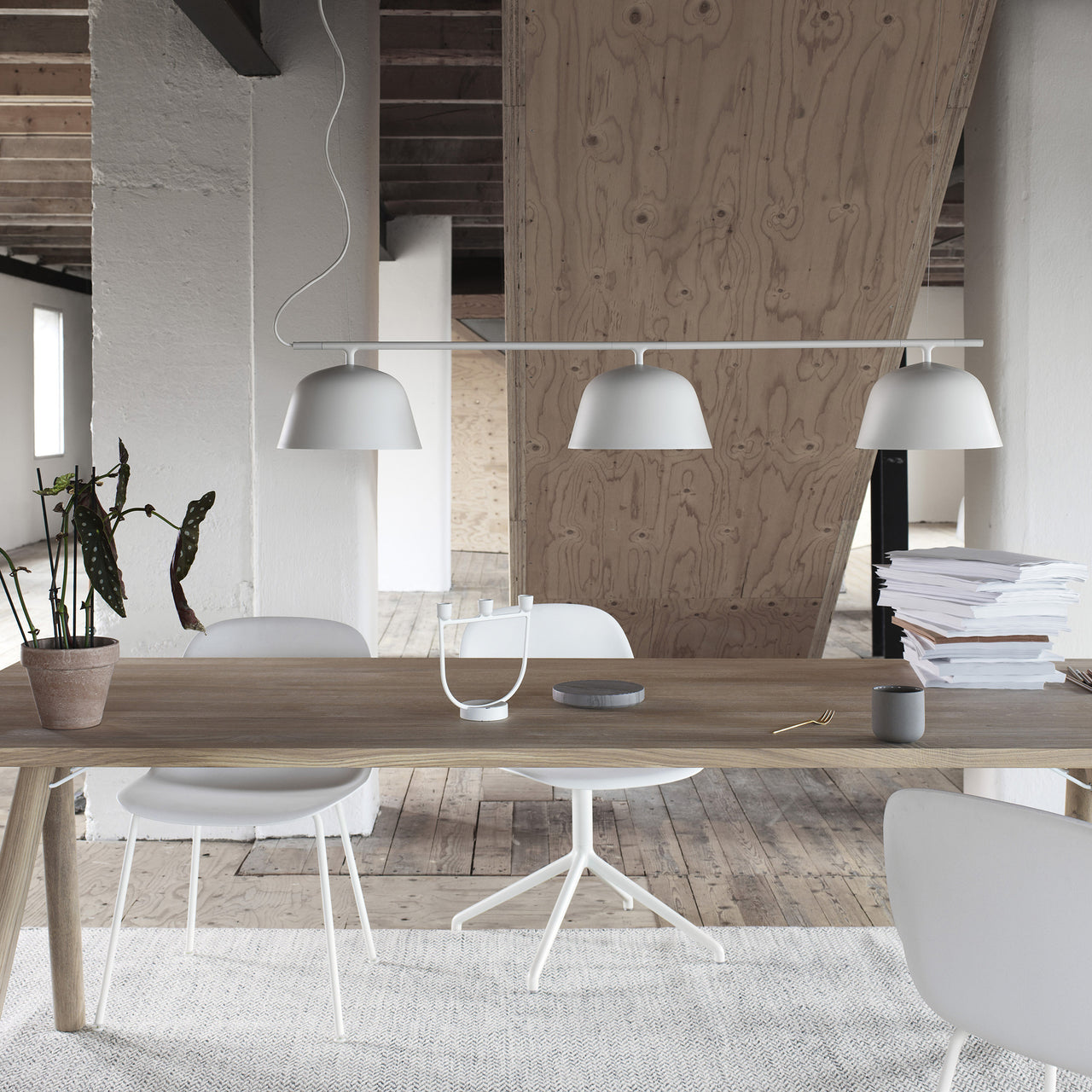 The best-selling Ambit light goes the distance with a trio mounted on a tubed rail. Stockholm's TAF Architects re-interpreted the typical billiard table lamp with this Ambit Rail, maintaining the fluidity of the individual shade by the same name. The trio seem to float, mid-air, Beckuse of hidden cables and joints and attenuated supporting wires.