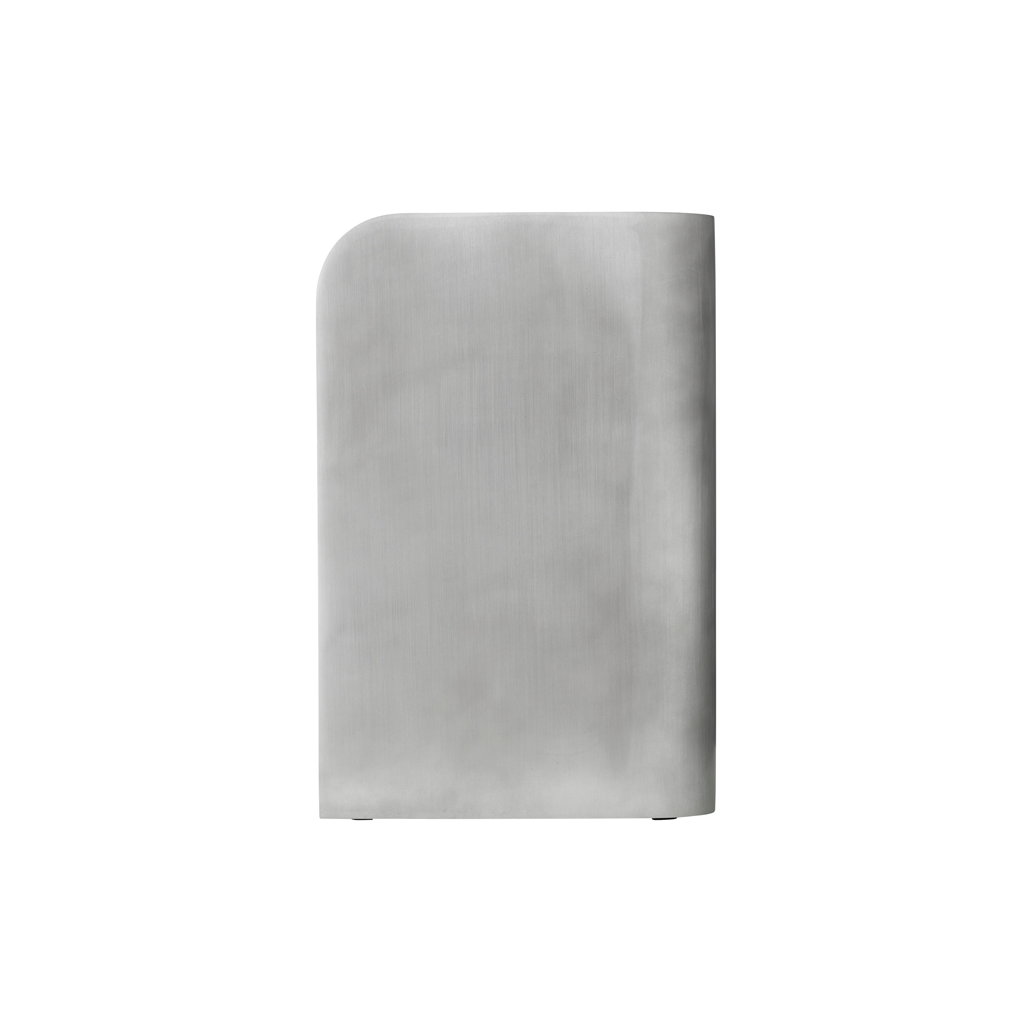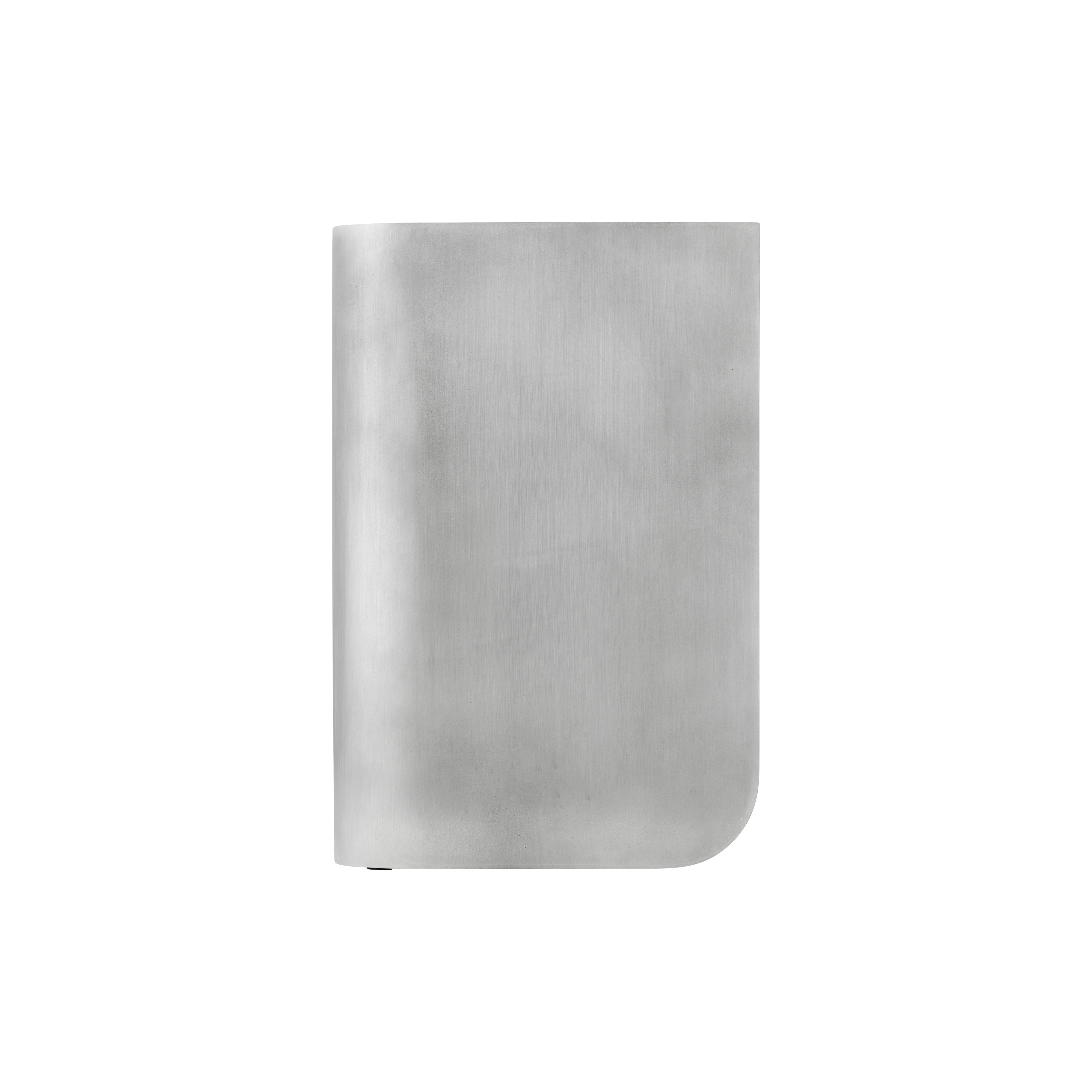 The Volume Side Table is a multipurpose piece that serves as a side table, stool, or pedestal. Made from polished aluminum, it features a distinctive shape inspired by rounded cubes that fit together seamlessly in three dimensions. Designed by Ted Synnott, known for his minimalist and practical approach, the table's lacquered surface is easy to maintain and suitable for both indoor and outdoor use. Its combination of straight and curved lines allows it to fit well in a variety of settings.