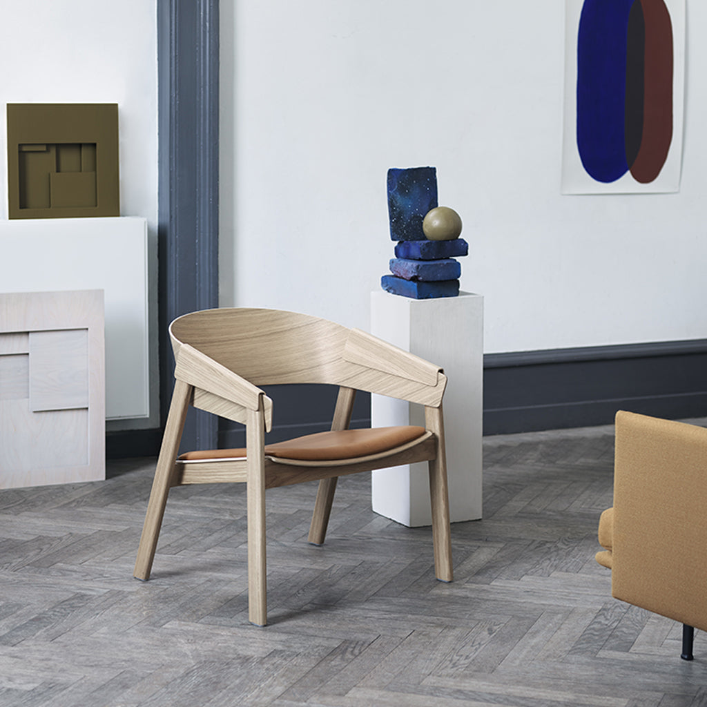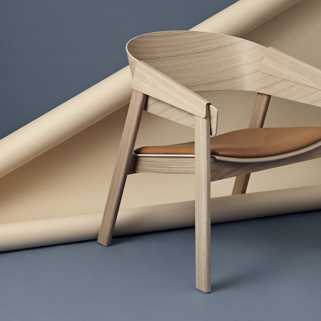 Within the legacy of Scandinavian style, designer Thomas Bentzen turns a new page with the innovative use of wood layering in his upholstered lounge chair. Featuring a capacious padded seat sheathed in textiles from Kvadrat or Refine leather, Cover still takes up comparatively little space in a room. Thomas creates a striking profile with the expressively curved shell, wooden armrests and slightly dipped seat, with the wood folded over the chair's legs and backrest. The chair frame is crafted in solid beechwood, with the backrest either in natural oak or in ash for the colored version.