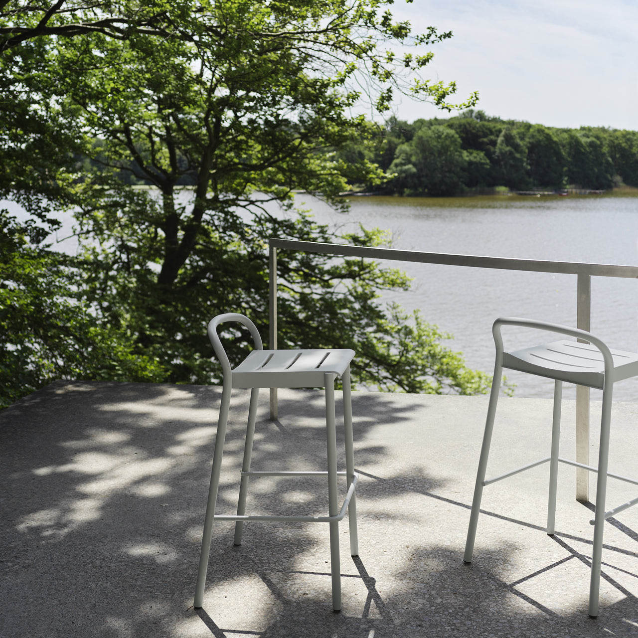 Lightweight but durable, Muuto's outdoor stool offered in bar or counter height keeps things comfortably alfresco—and, when not in use, stacks up to 5 pieces high for easy storage. Weather-resistant through the seasons, Linear is made of galvanized steel and then finished with a deep matte, UV-resistant powder coating. Thomas Bentzen's slatted-seat design also prevents water from pooling in his timeless seating with an elegantly curved back and clean-lined proportions.