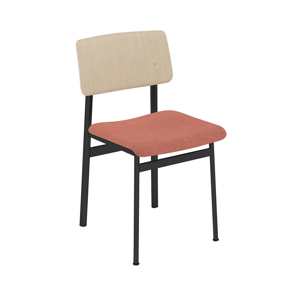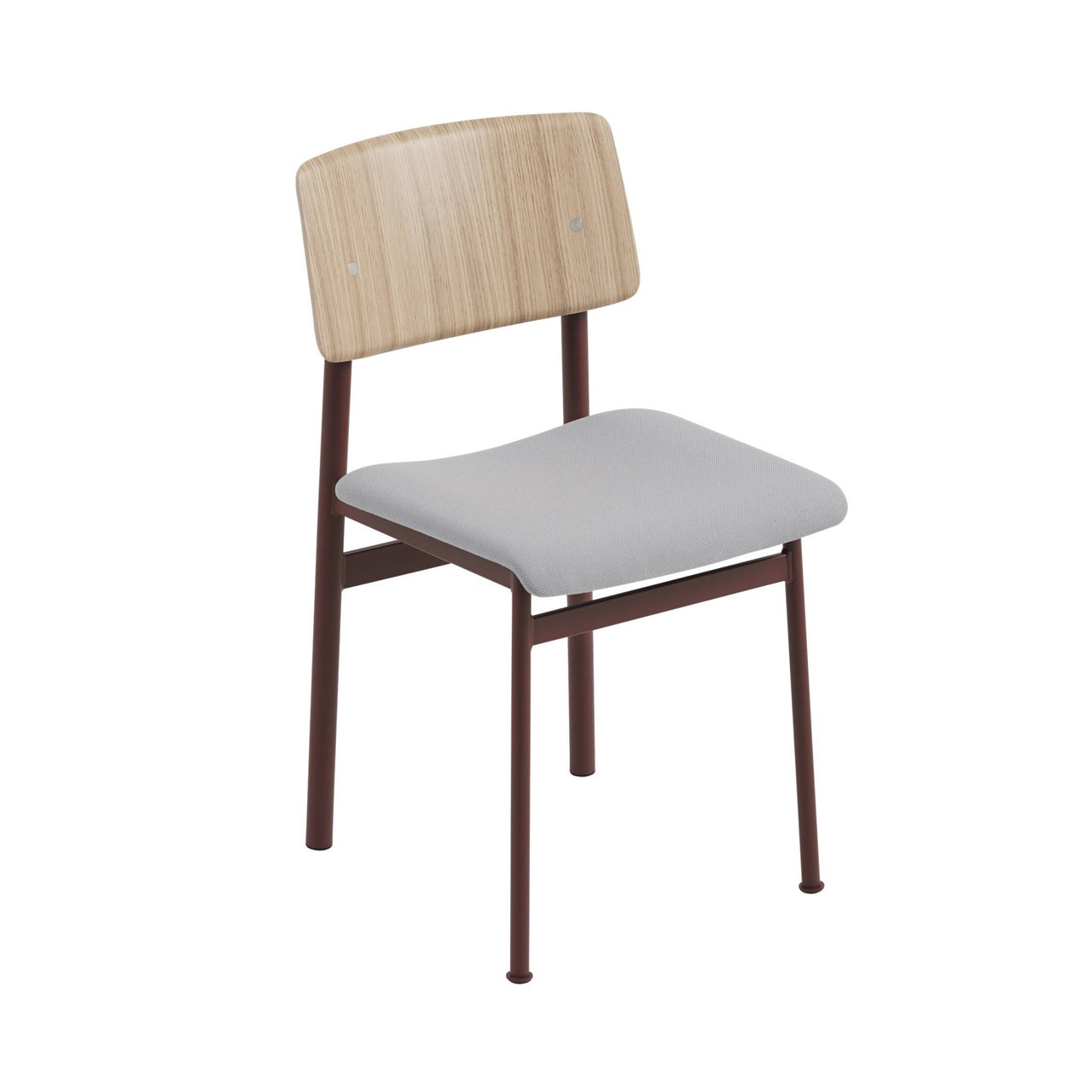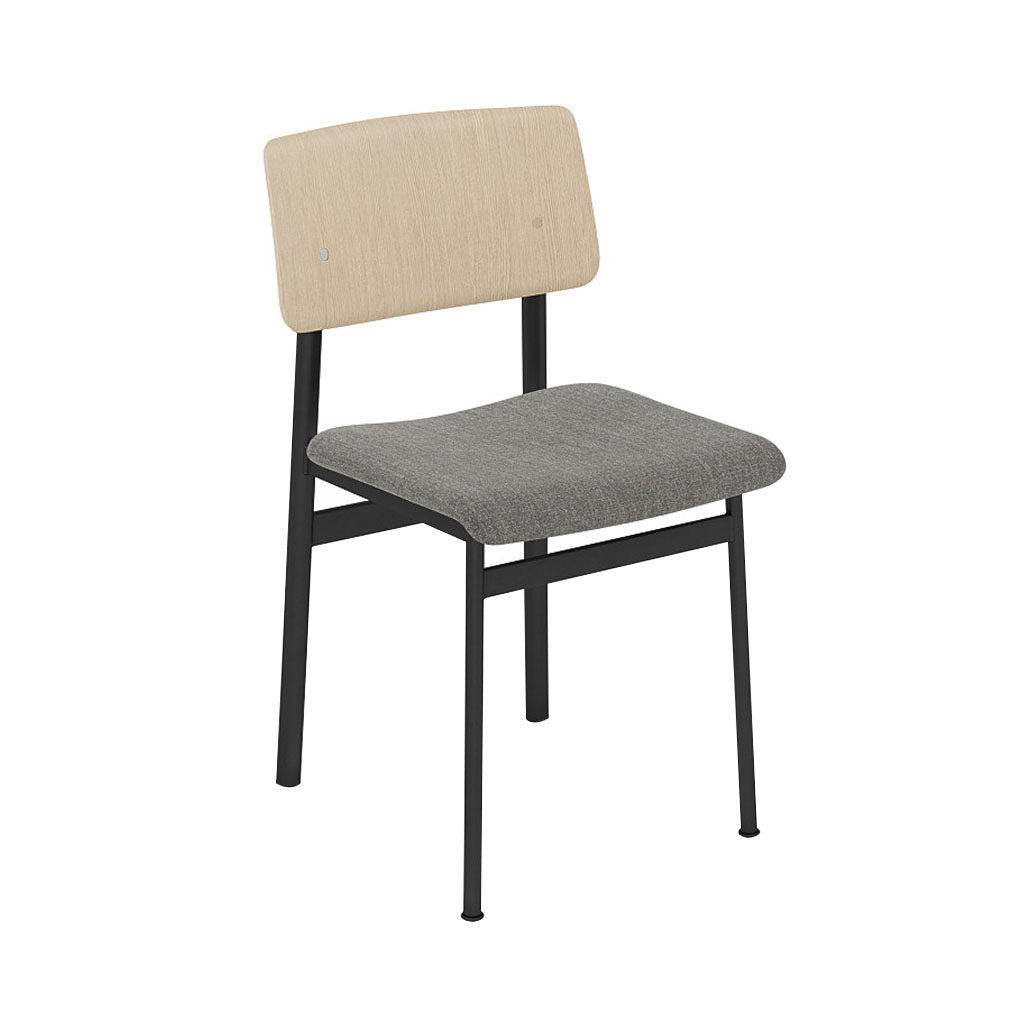 An upholstered seat adds a bespoke option to Muuto's versatile seating inspired by industrial environs. Loft Chair features compatibly contrasting materials, with its angular frame in powder-coated steel and comfortably curved backrest and seat formed in lacquered oak veneer. Thomas Bentzen's design has a welcome character while still providing all-purpose functionality and everyday durability for high-impact settings such as restaurants, meeting rooms or dining areas in the home.