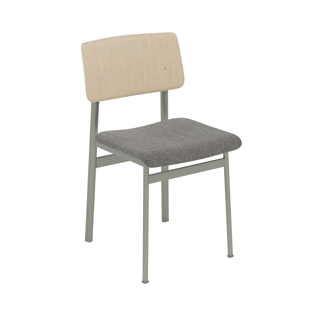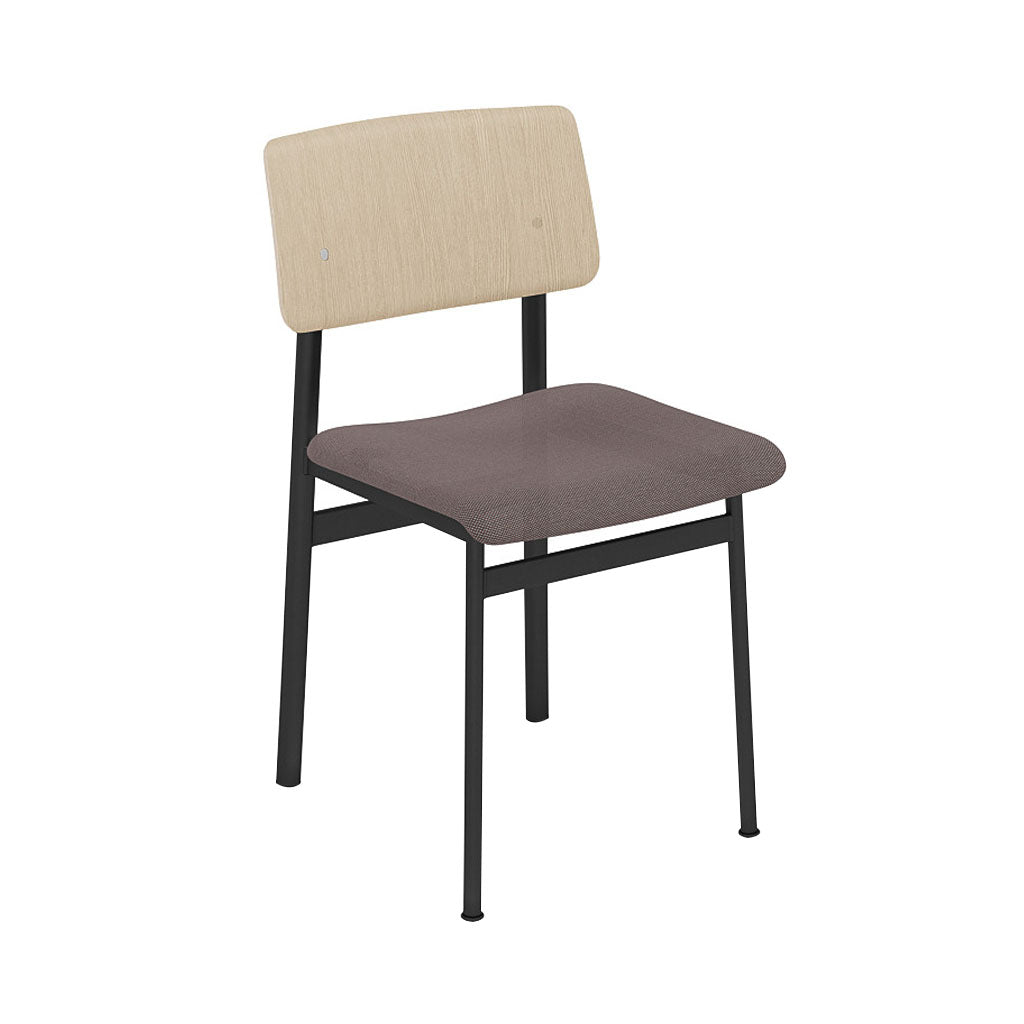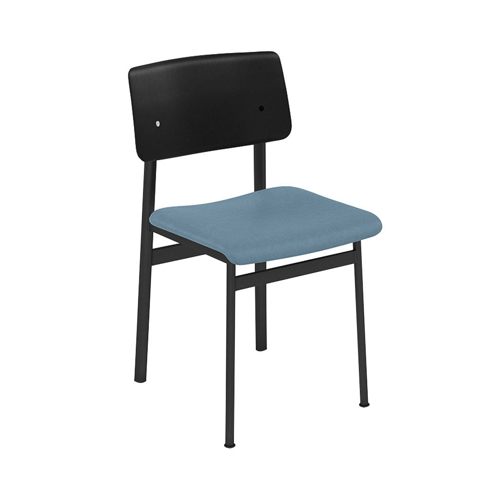 An upholstered seat adds a bespoke option to Muuto's versatile seating inspired by industrial environs. Loft Chair features compatibly contrasting materials, with its angular frame in powder-coated steel and comfortably curved backrest and seat formed in lacquered oak veneer. Thomas Bentzen's design has a welcome character while still providing all-purpose functionality and everyday durability for high-impact settings such as restaurants, meeting rooms or dining areas in the home.