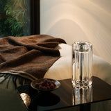 Made from thick, pressed glass with a ribbed surface, this table light diffuses illumination to create linear patterns. The integrated 2700K LED ring provides warm lighting, and its IP45 rating makes it suitable for indoor and outdoor use.