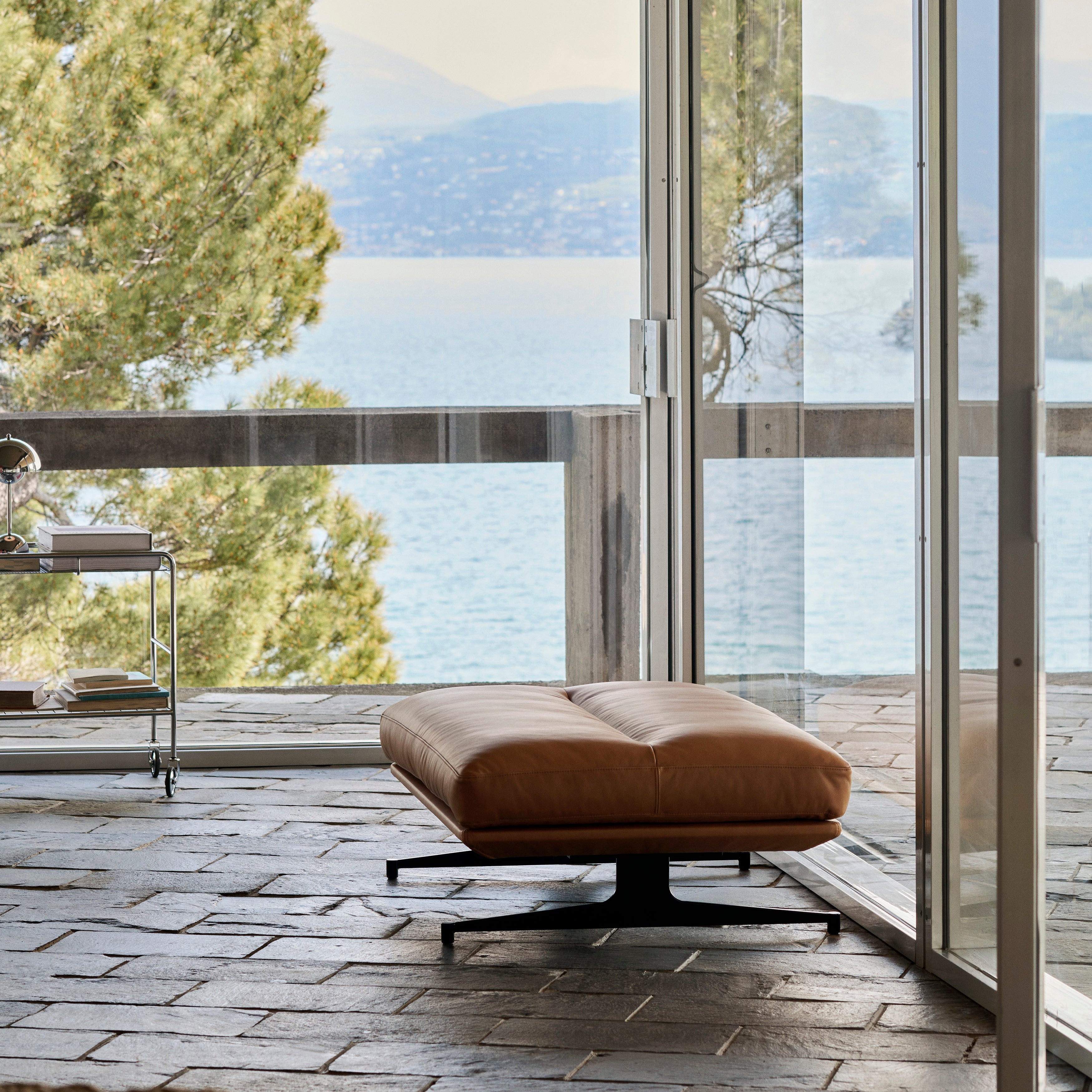 Torbjørn Anderssen and Espen Vol add a dramatically sized pouf to augment Inland collection’s mix of Scandi and Italian-inspired design influences. Also doubling as a spare seat, the generous rectangle almost floats on its sculptural steel supports, beckoning with its plush cushioning, custom-upholstered in a fine textile or buttery leather.