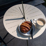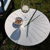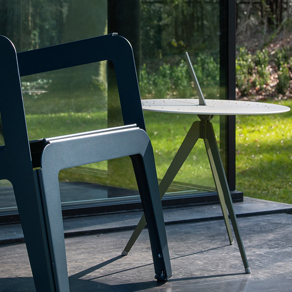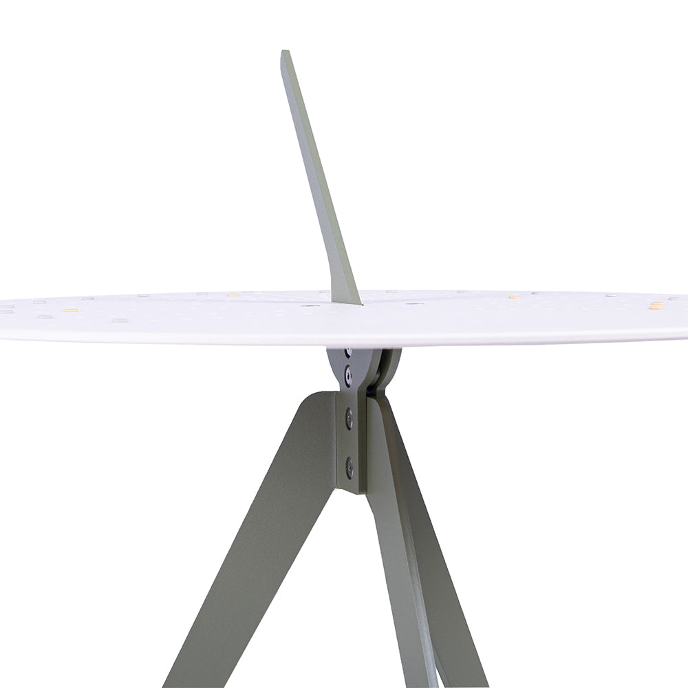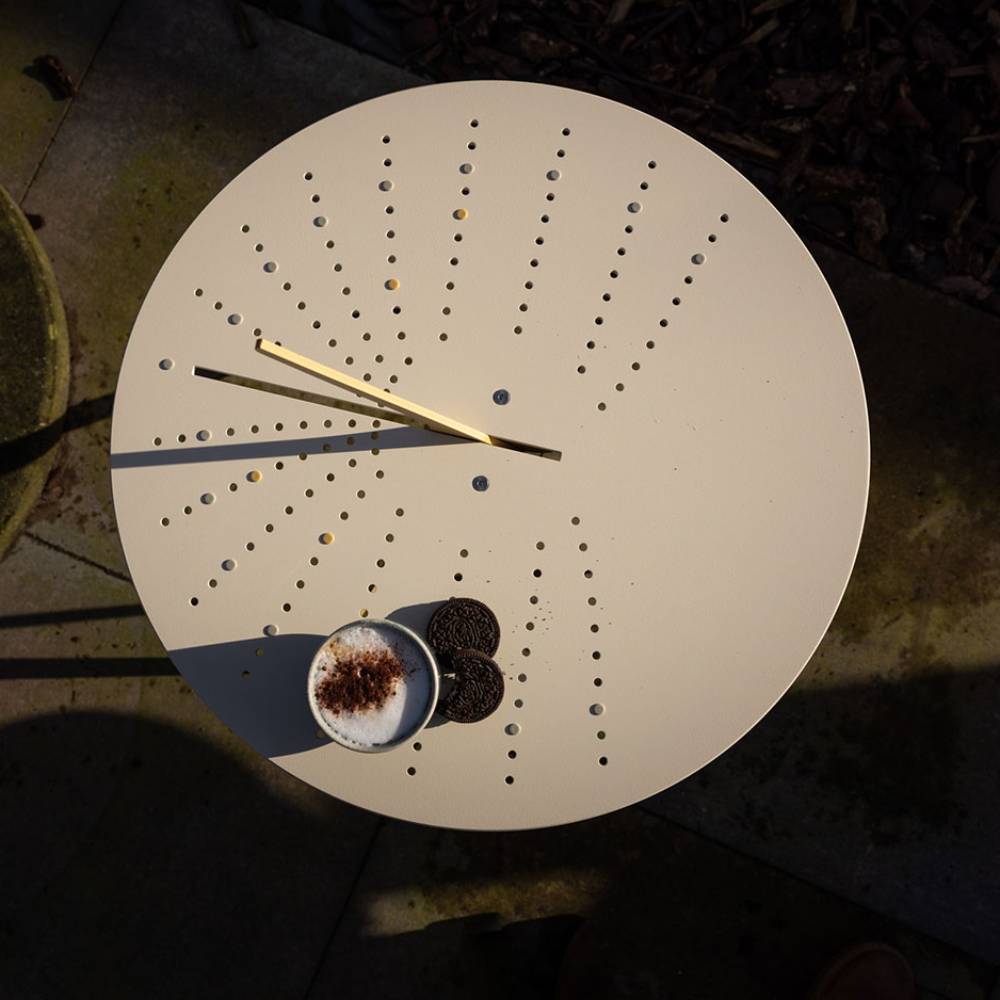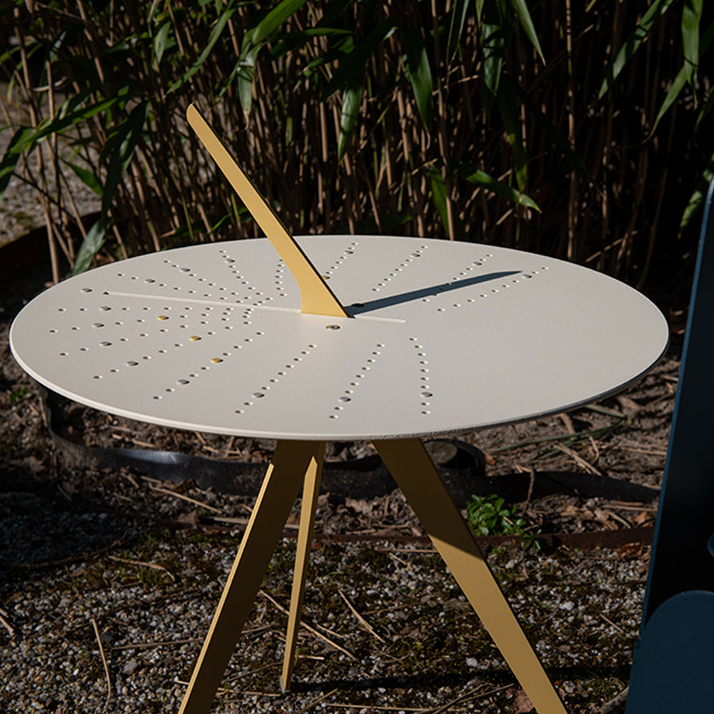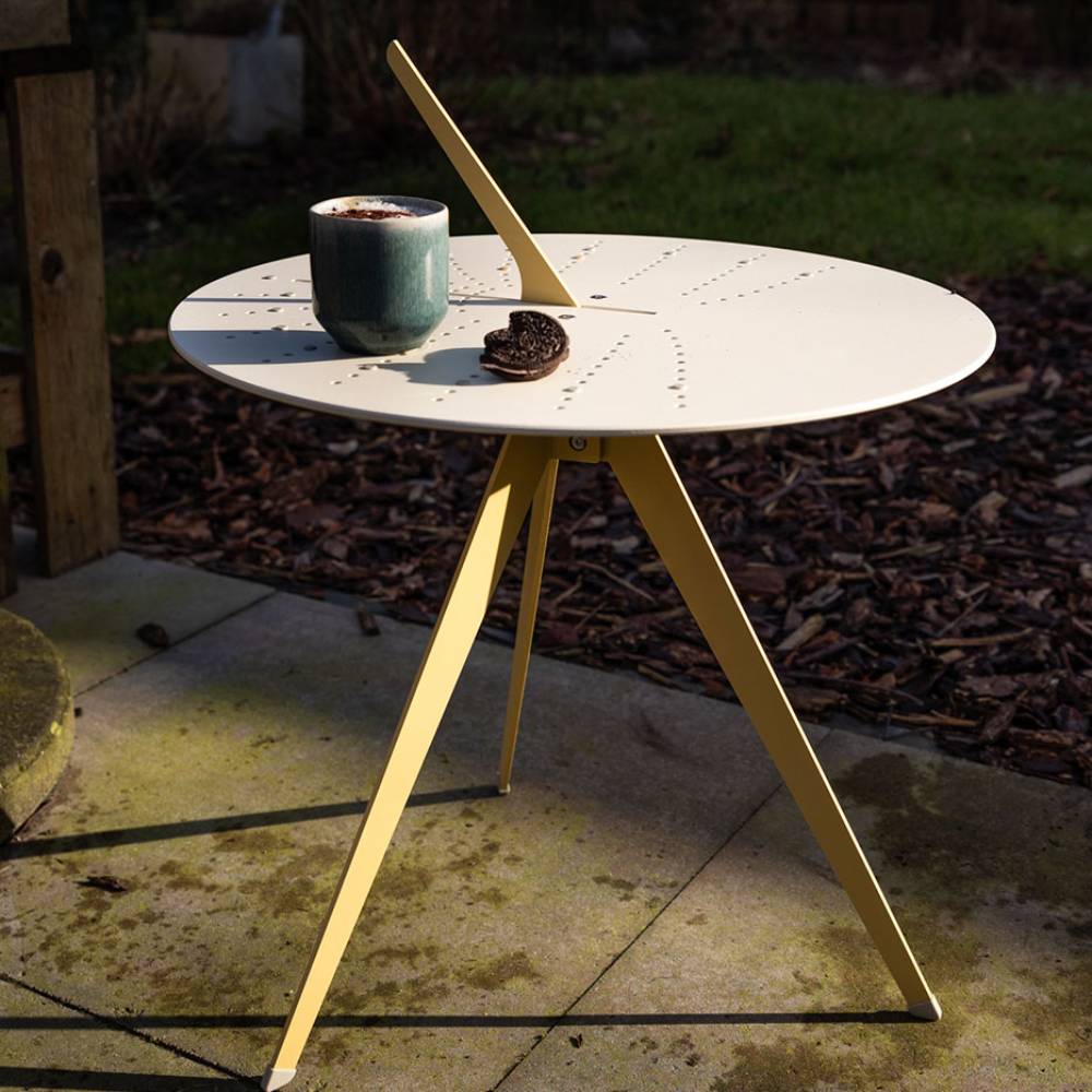 Weltevree's Sundial Table combines a handsome outdoor coffee table with a universal sundial, made of weatherproof powder-coated aluminum and steel. Designed by Umut Yamac, it tells time by casting shadows as the sun moves across the horizon, connecting it to nature’s rhythms. Mark the hours with the included grey pins and use the yellow ones as a reminder for a coffee break, lunch or children’s playtime.