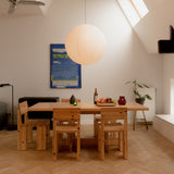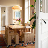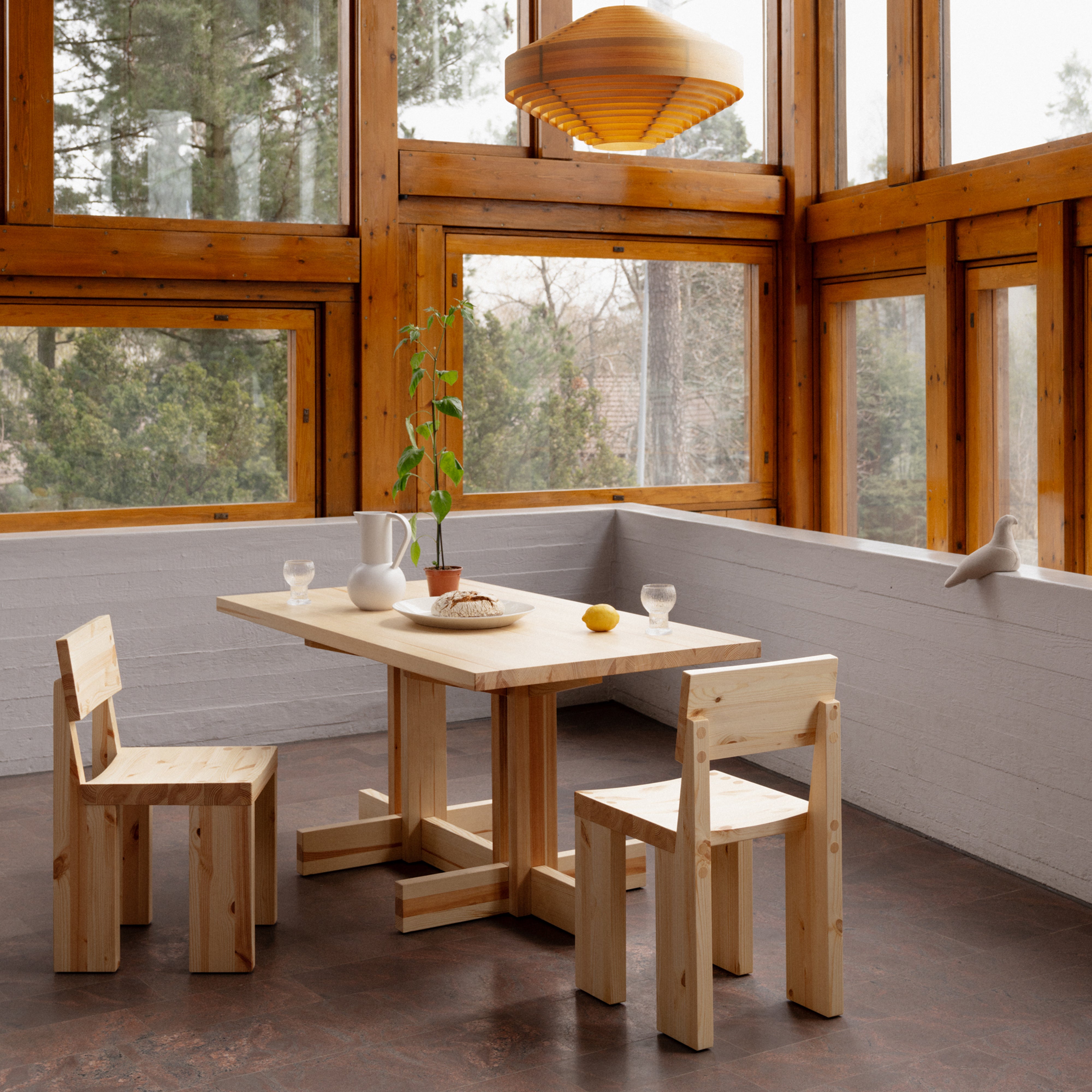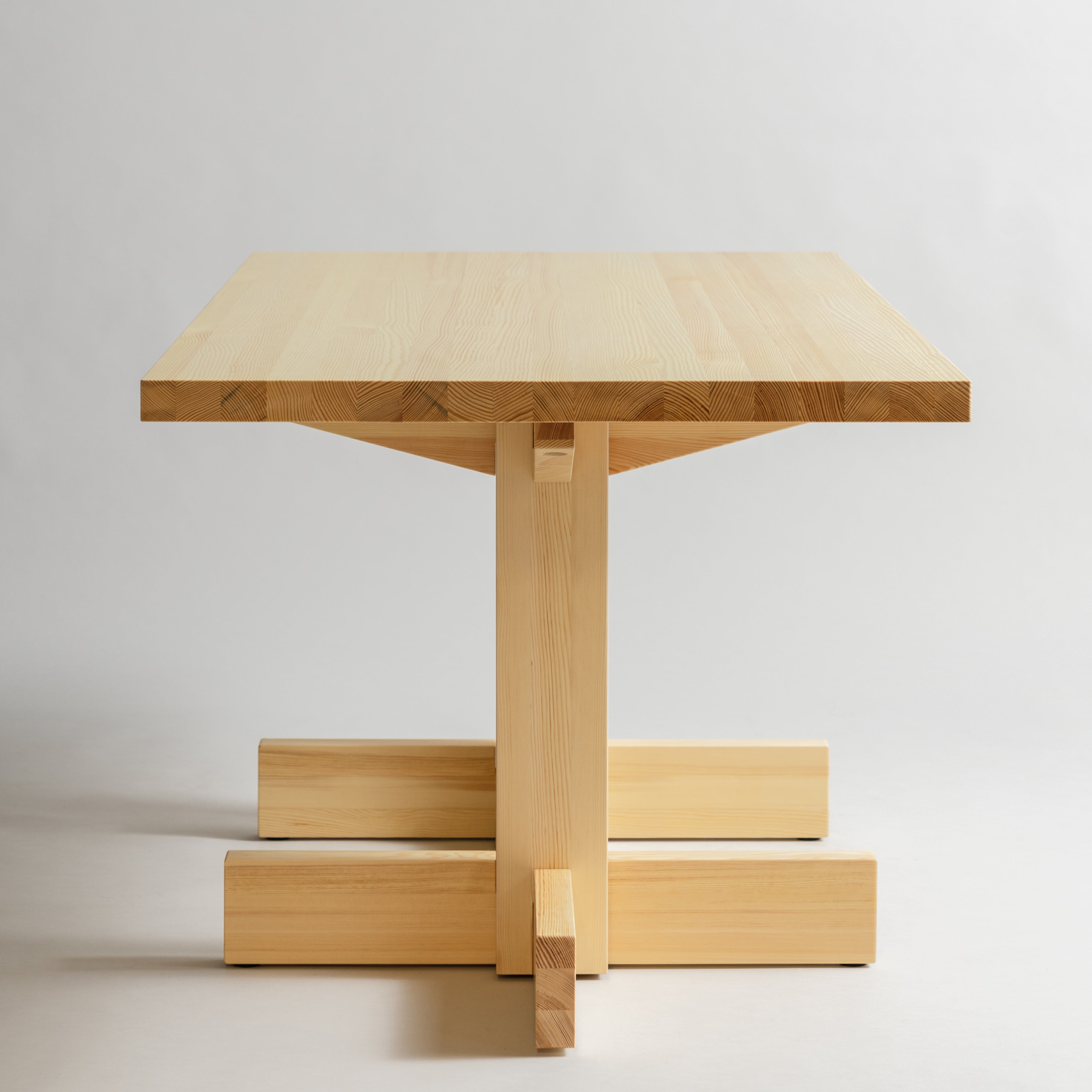 The Vaarnii 001 Rectangular Dining Table, designed by Fredrik Paulsen, is a solid, timeless piece crafted from sustainably sourced Finish pine. Known for its distinctive grain, which Paulsen describes as “psychedelic,” this table highlights the raw beauty of the material. Over time, the wood naturally darkens into a rich honey tone, and the table embraces scratches and dents as part of its aging process.