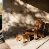 The 015 Peace Outdoor Footstool is crafted from heat-treated Finnish pine, ensuring durability and weather resistance. Designed by Faye Toogood, known for her playful yet functional creations, this footstool complements the Peace Outdoor Lounge Chair, offering enhanced ergonomic comfort. Its flat surface allows it to double as an outdoor table, and over time, the pine develops a silver-gray patina, adding character to any outdoor setting.