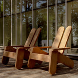 The 015 Peace Outdoor Lounge Chair is crafted from heat-treated Finnish pine, ensuring durability and weather resistance. Designed by Faye Toogood, known for her sculptural minimalism, the chair features a low profile that hugs the ground, a high back for seclusion and support, and a wide seat with broad armrests for ultimate comfort. Over time, the pine develops a silver-gray patina, adding character to any outdoor setting.