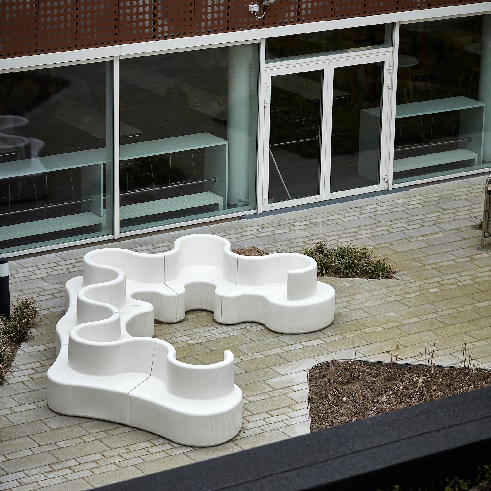 Irrepressible modernist Verner Panton designed his iconic Cloverleaf in 1969, an undulating modular sofa system consisting of right, left and middle units that combine in a choice of 5 configurations. Intended for both indoor and outdoor placement, this statement seating is made from 100% recyclable PE and is available in a happy profusion of color choices.
