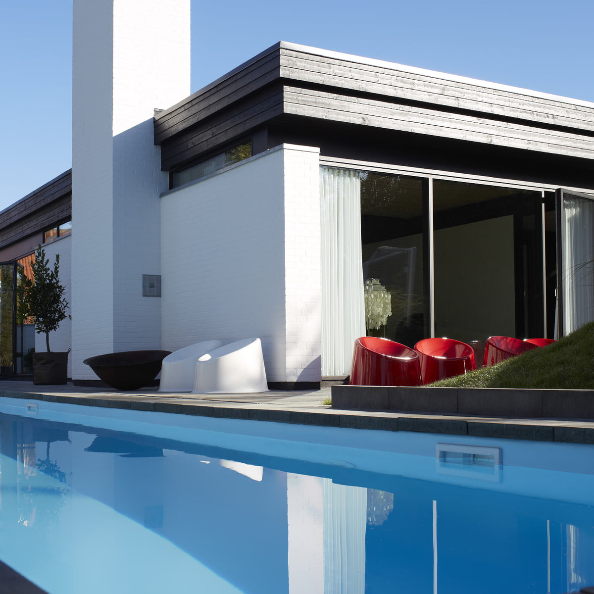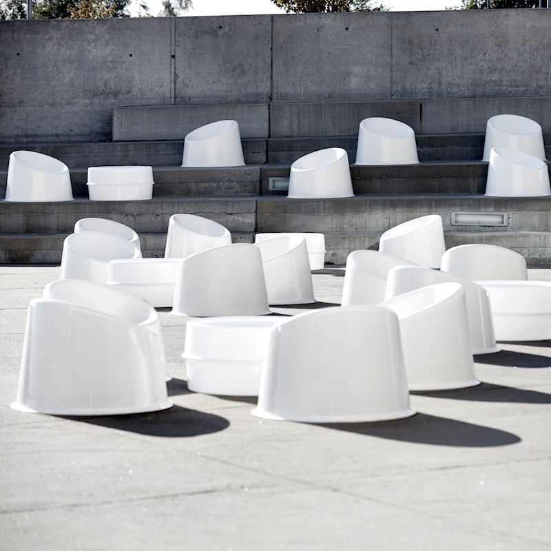 With Warhol-like overtones, Panto Pop brings art-world chic to a lounge chair. Stackable and ready for use inside or out, the molded ABS-plastic seating has a boldly graphic appeal and comfortably molded contours. From poolside to playroom, design master Verner Panton's lounge chair reflects its circa 1969 origins while remaining a practical and cheery standout today.