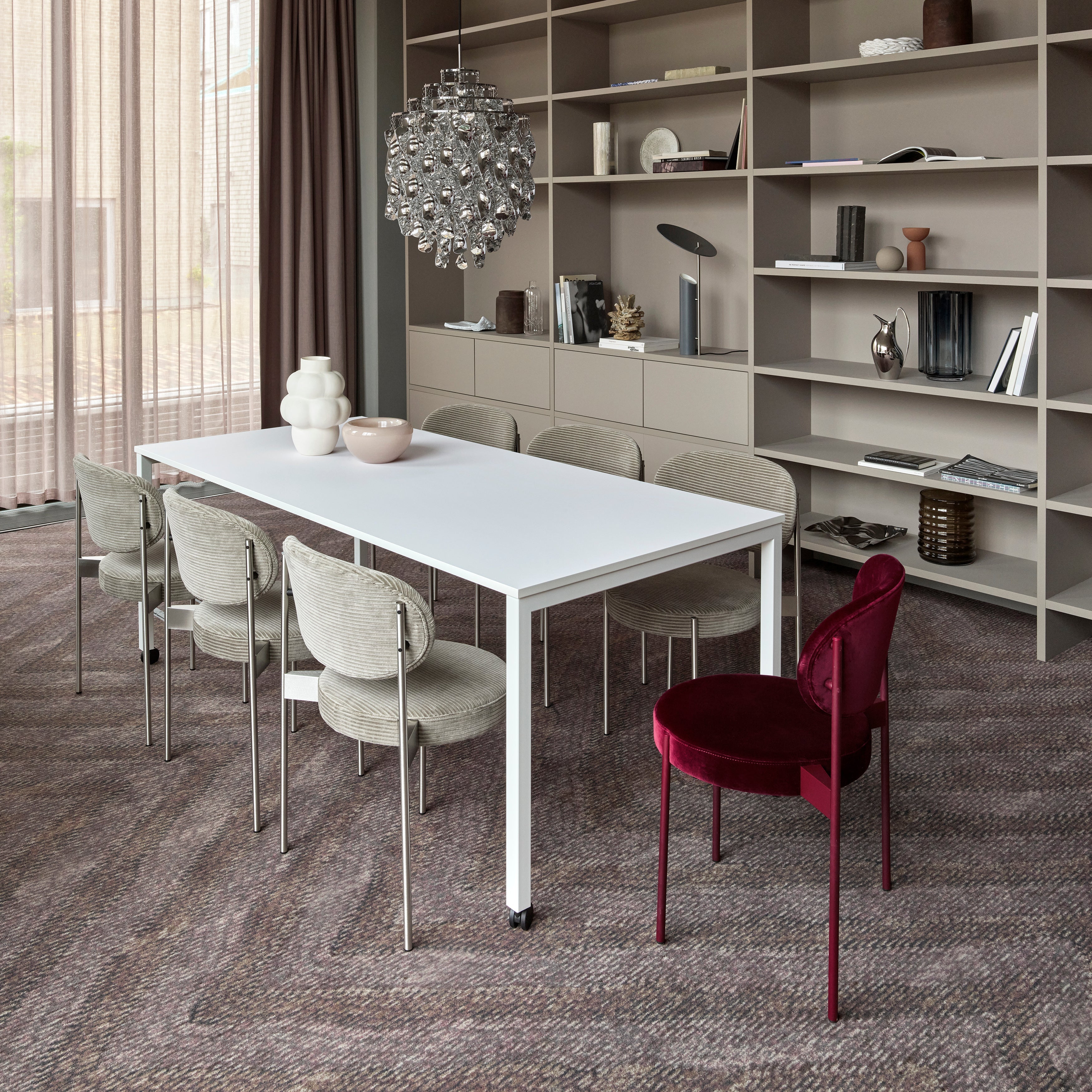 Originally designed as Verner Panton's working table, Move has a matte tabletop surface in next-generation nanotech laminate that is anti-fingerprint, soft to the touch and scratch-resistant. The tabletop has a lacquered edge and the frame is made of powder-coated square steel tube. And, true to its name, Move is mounted on lockable castors for easy mobility.