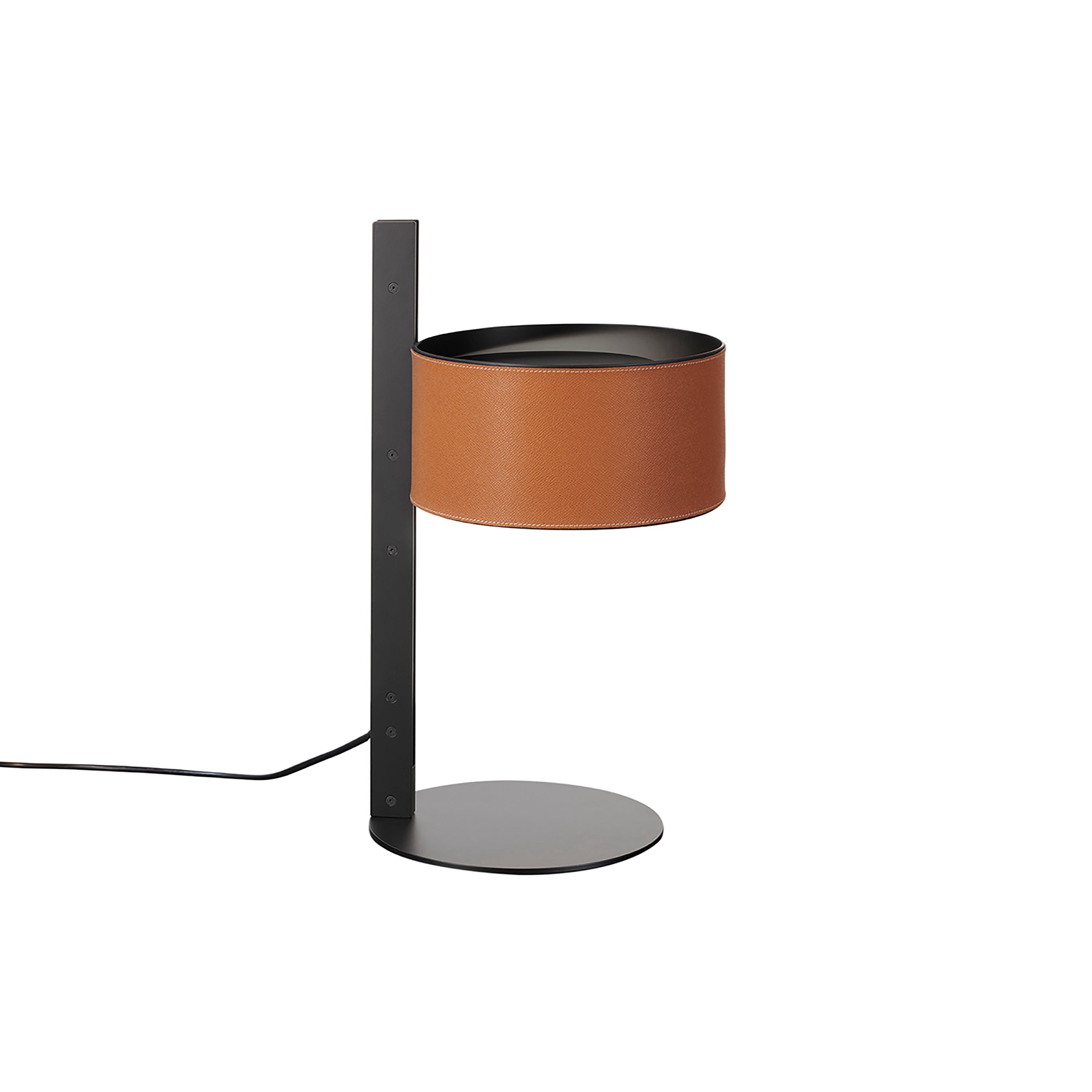 Adding an indulgent note to savor on a desk or tabletop, Parallel’s inky geometry is topped with an artisan lampshade covered in hammered leather. Victor Vasilev’s design reflects a continuing spirit of innovation from Oluce, the Italian modernist lighting brand that dates back to 1945. In lacquered matte black, the lamp’s base, stem and closing disk offer an intriguing interplay with the reflector in rich hues of sand or natural leather.