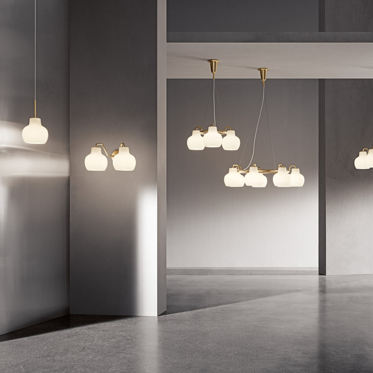As a versatile single pendant adapted from architect Vilhelm Lauritzen’s original 1940s design for the Danish Broadcasting House, VL Ring Crown radiates charm as well as warm illumination. With its distinctive polished white shade in handblown, triple-layered opal glass, it has a discreet white cord and an untreated, polished brass suspension.