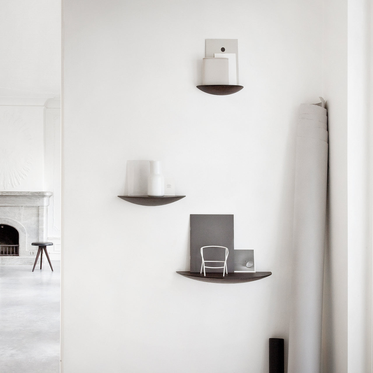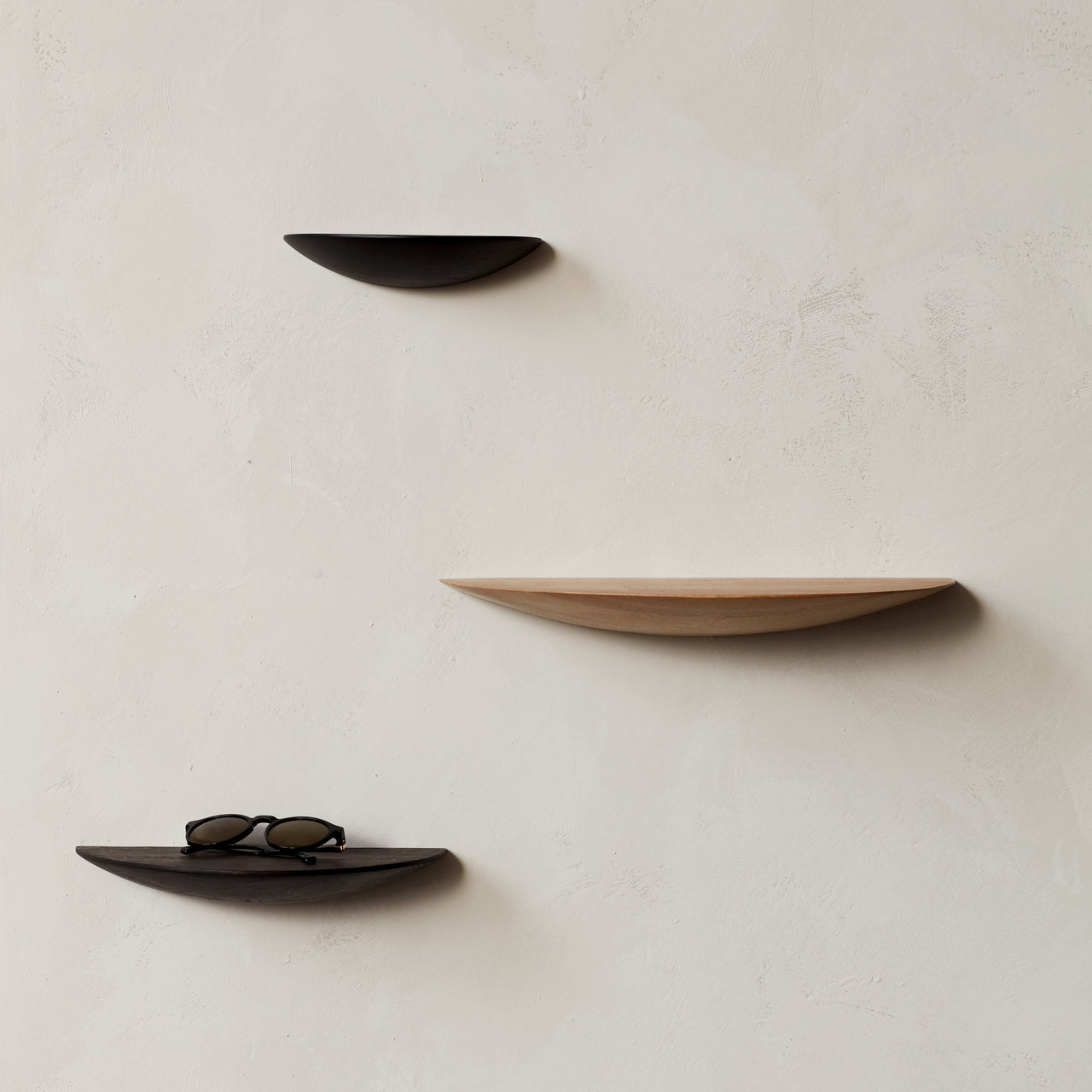 Call it second nature. The design team behind the Fungi went into the woods for inspiration for their free-floating wood shelves. What emerged in the curved ash shapes was a stylized reimagining of the curious mushrooms that grow horizontally out of the trees. In 3 different sizes and 3 varied shades, the shelves are just as striking on their own or clustered.