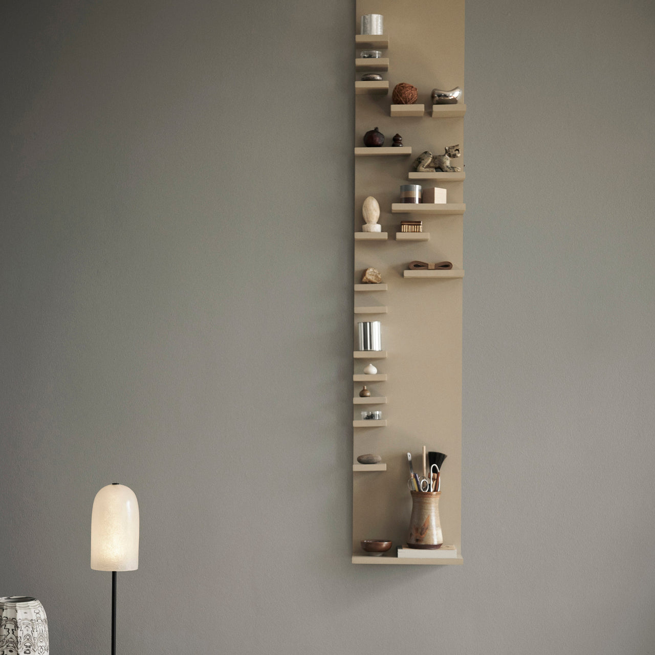 Inspired by traditional Danish 'sættekasser' boxes, the Parade Shelf offers a modern platform to showcase cherished items. It features shelves of varying depths, providing an engaging display for your favorite pieces. Crafted from FSC™-certified MDF, the shelf is available in cashmere and oiled oak finishes, allowing it to seamlessly integrate into diverse interior styles.