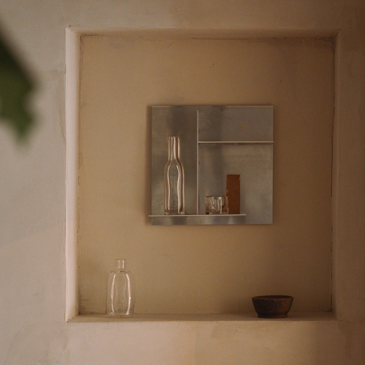 Suggested by old printer's works, Rivet Typecase is a compartmentalized metal shelf with discrete sections meant for storing and displaying cherished objects. Named for the process used in which laser-cut raw aluminum sheets are hammered together by hand, Jonas Trampedach's design is easy to mount on the wall with the accompanying backplate. And each piece is unique due to the unfinished look of the material with its individual natural irregularities.