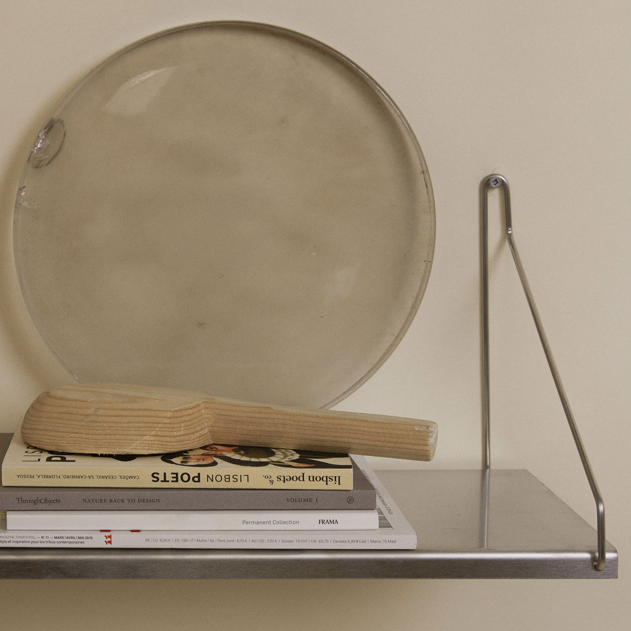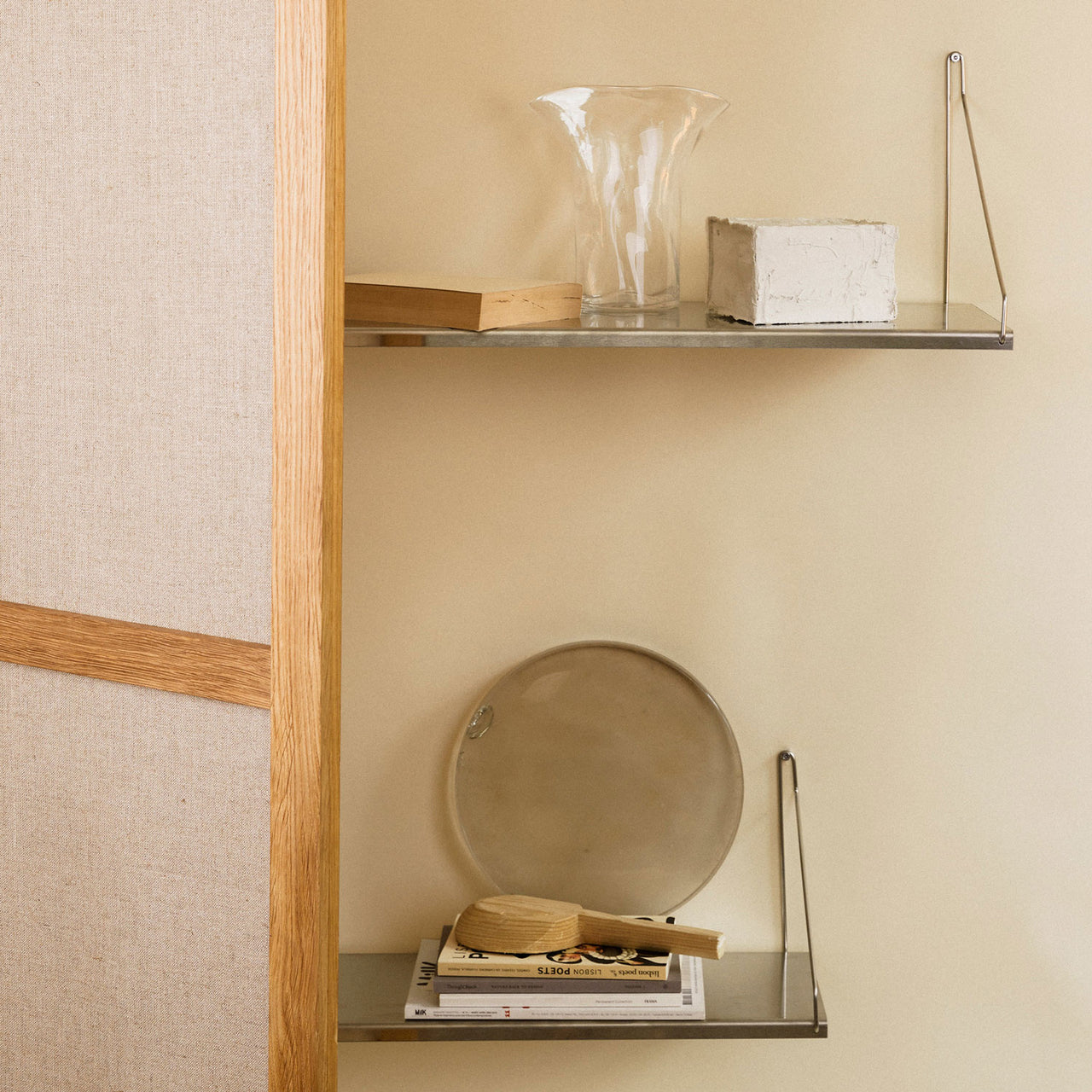 The single shelf for the Frama Shelf Library in stainless steel. Crafted in stainless steel, the shelf can be easily placed in a variety of customizable positions within the Shelf Library or mounted to the wall individually. With the industrial origins softened by rounded details and a compact structure, it's an elegant means for both display and storage. Available in warm white steel or stainless steel.