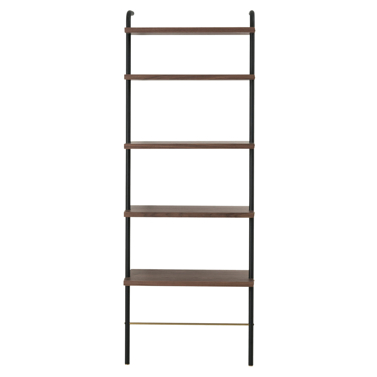 Designer par excellance David Rockwell's reinterpretation of the word "valet" for the needs of life today yields these handsome wall-leaning shelves to hold books, supplies and other essentials. Rigorously crafted by Stellar Works, they take form in a luxe mix of laminate walnut veneer, blackened steel and brushed brass. At once streamlined but stylishly cosmopolitan, they reflect the purpose of the entire collection, as the designer notes indeed—"tools for living."