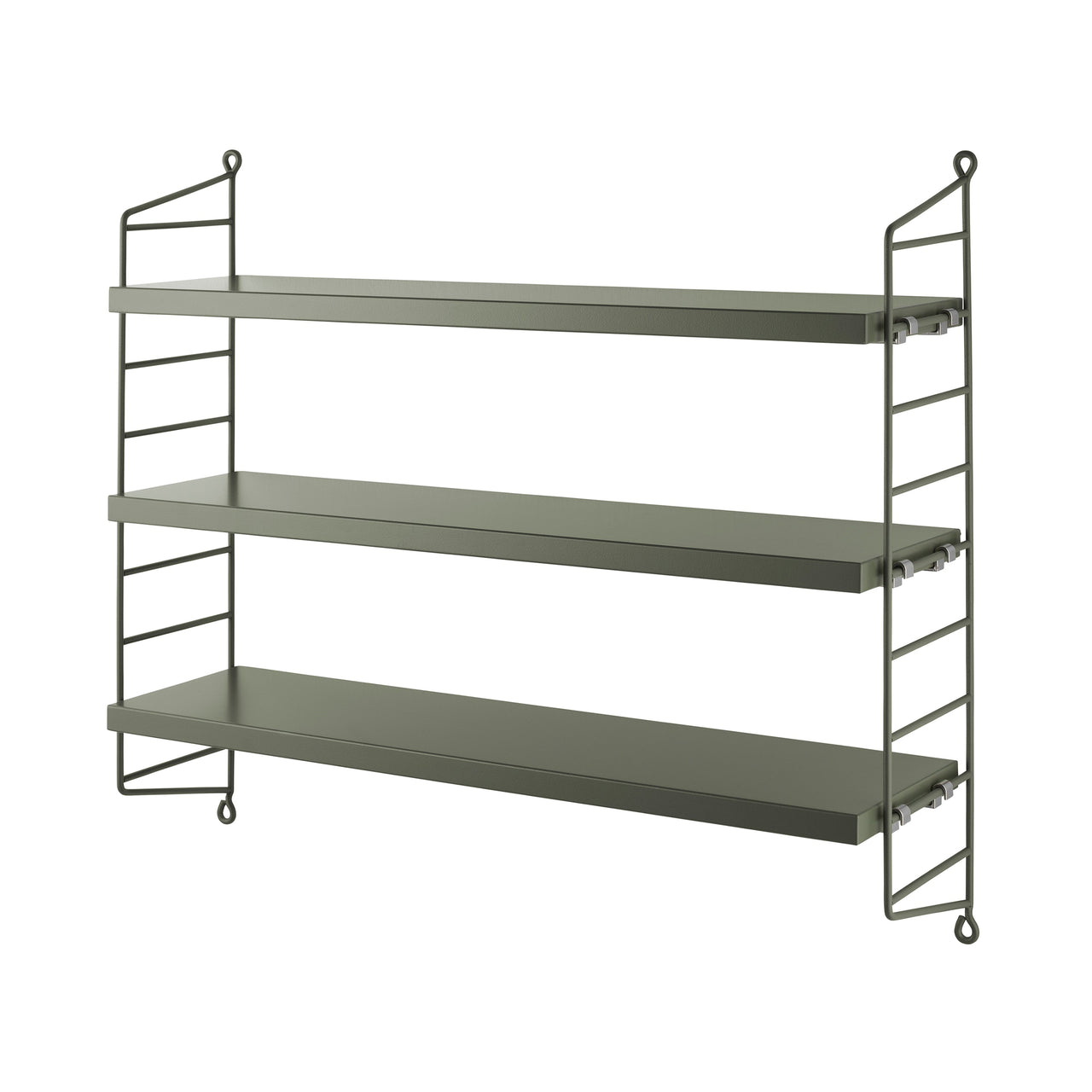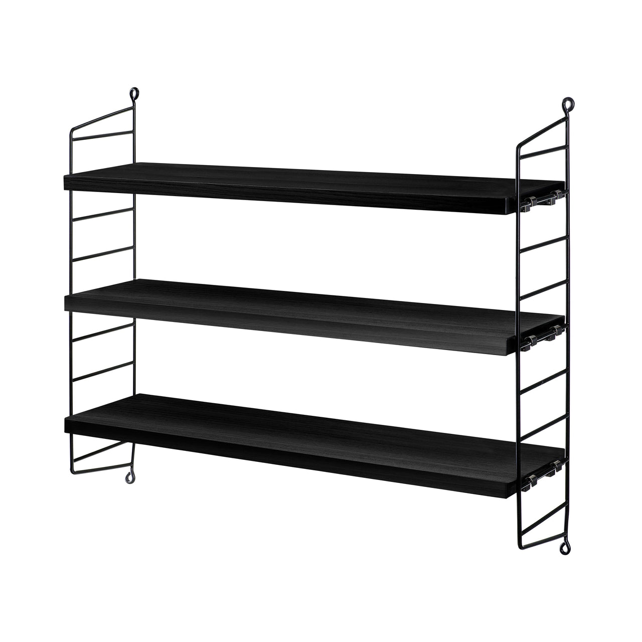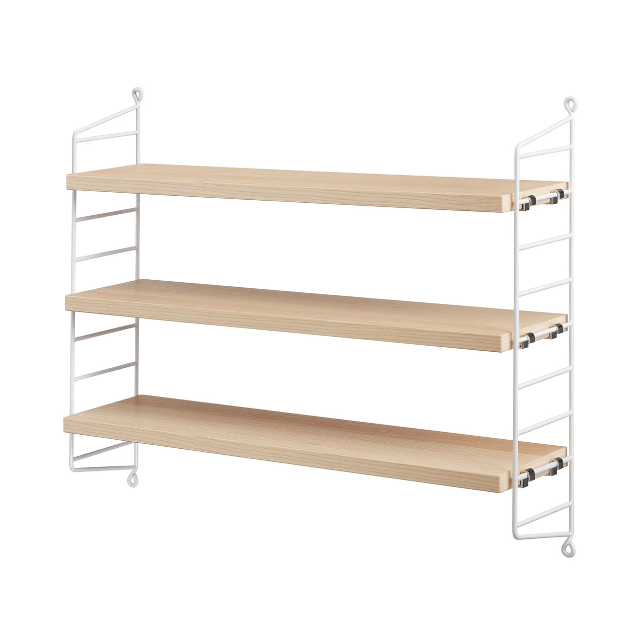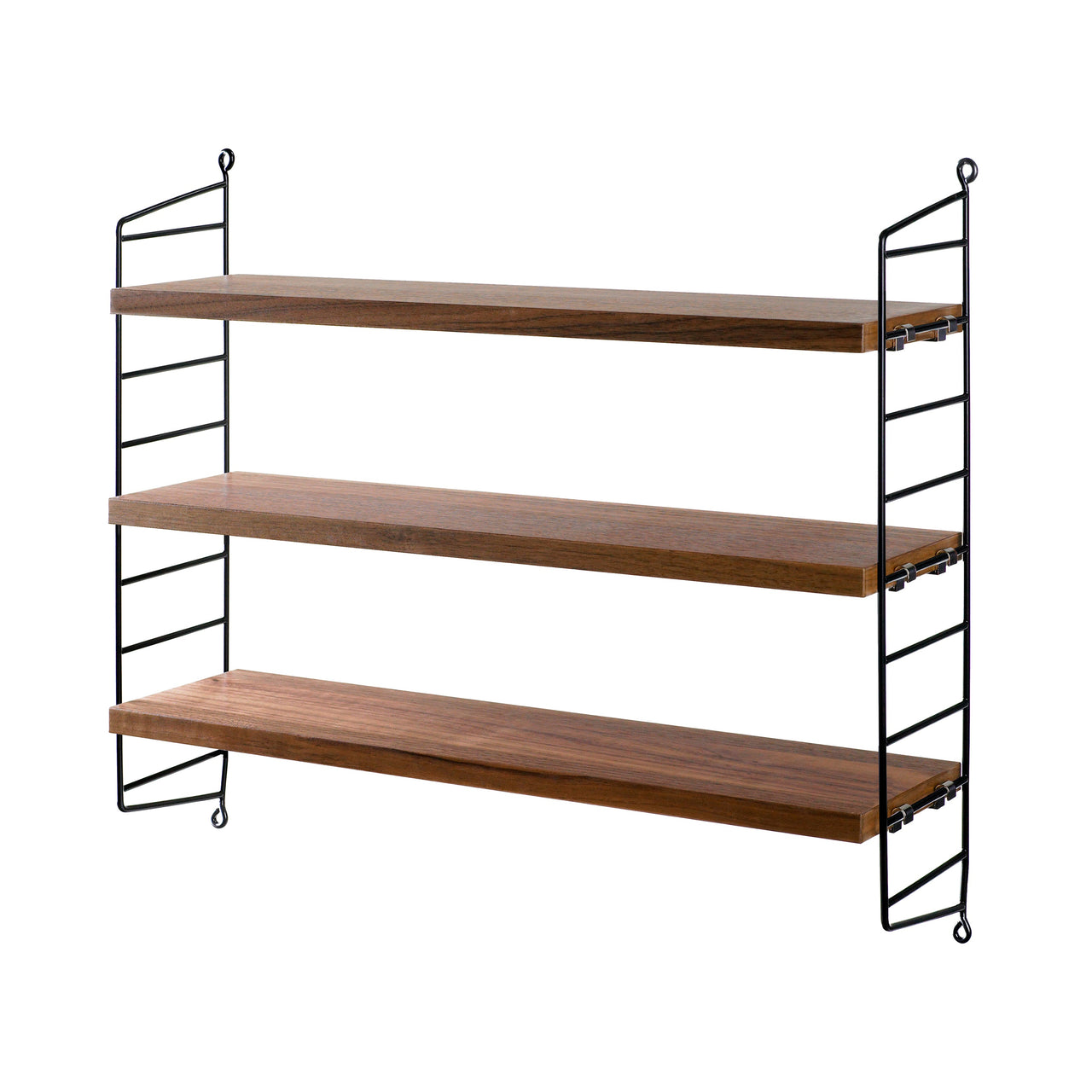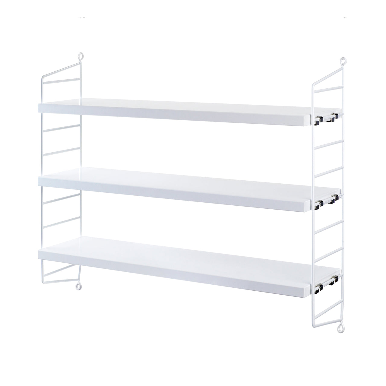 The slender "ladder" allows shelves to be easily repositioned. Comprises of three pre-packed shelves (as displayed).