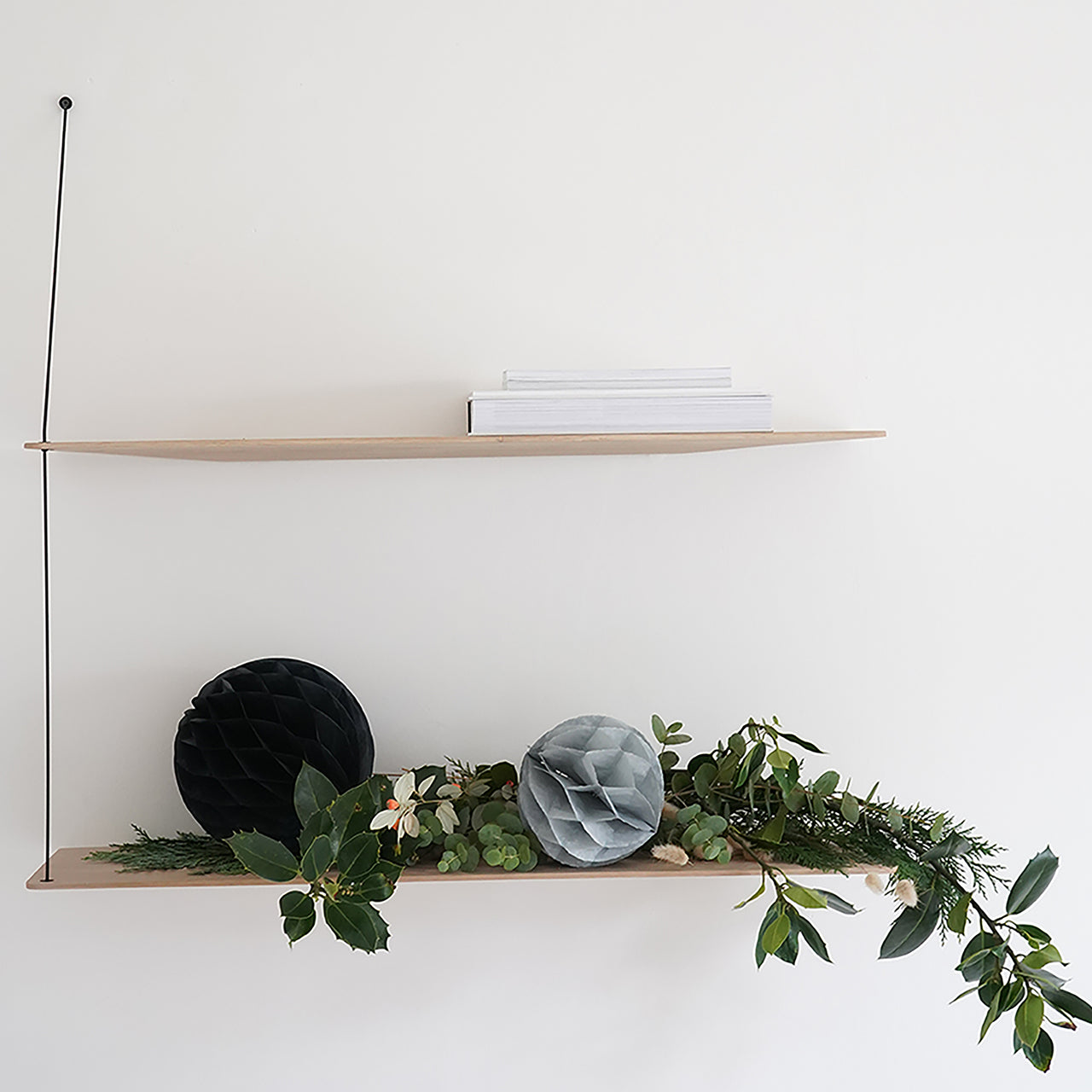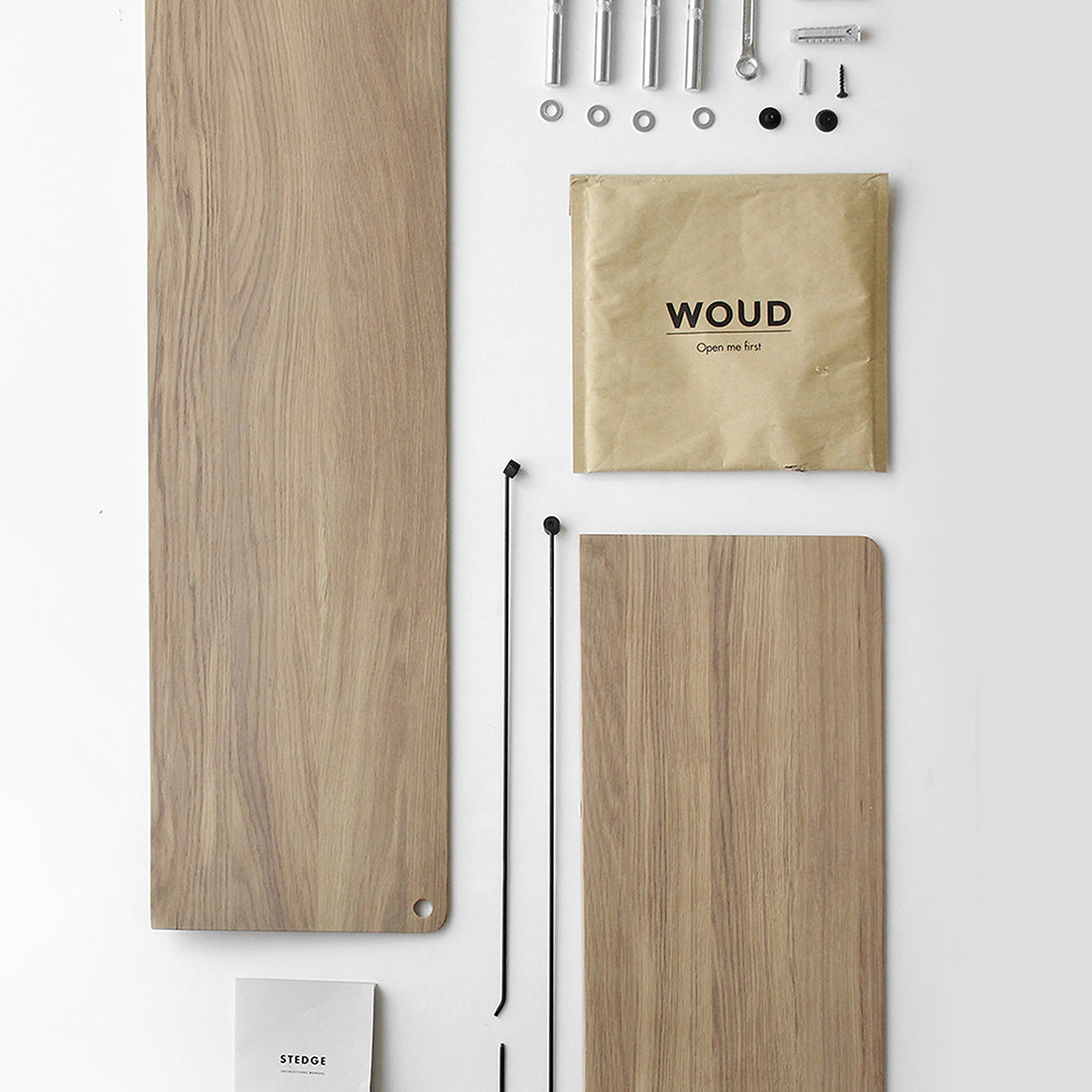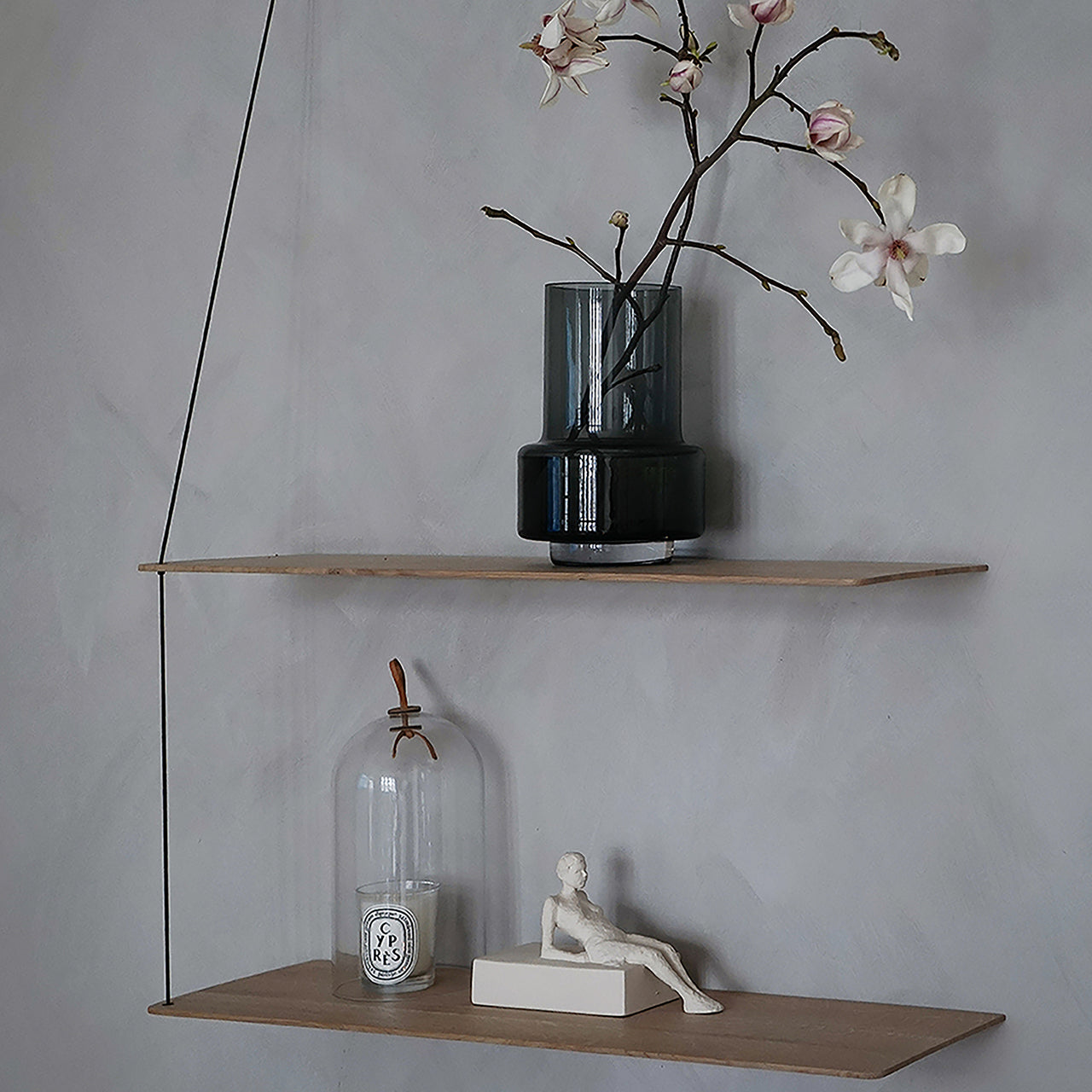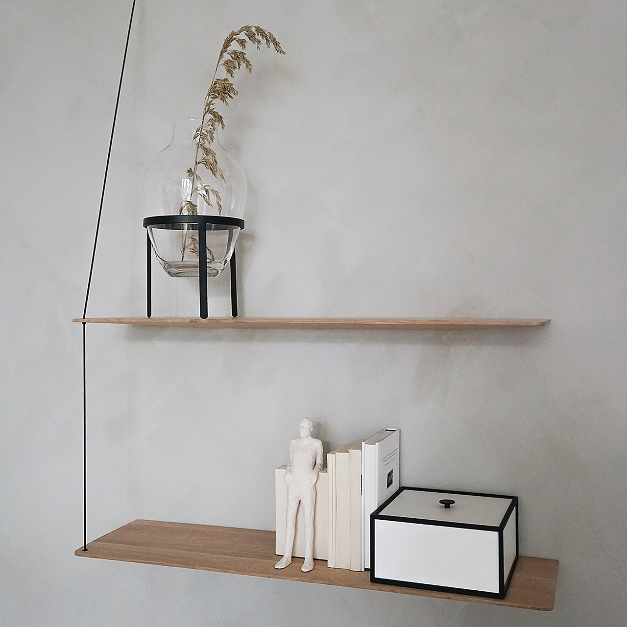 Like magic, Woud's Stedge shelving system appears to be held in place by a single cord. This minimalist sleight-of-hand from young German designer Leonard Aldenhoff reveals itself as shelves attached to a wall with screws and connecting metal wires. Light and airy in concept, Stedge comes with 2 slim oak shelves and can be extended with extra shelves purchased separately