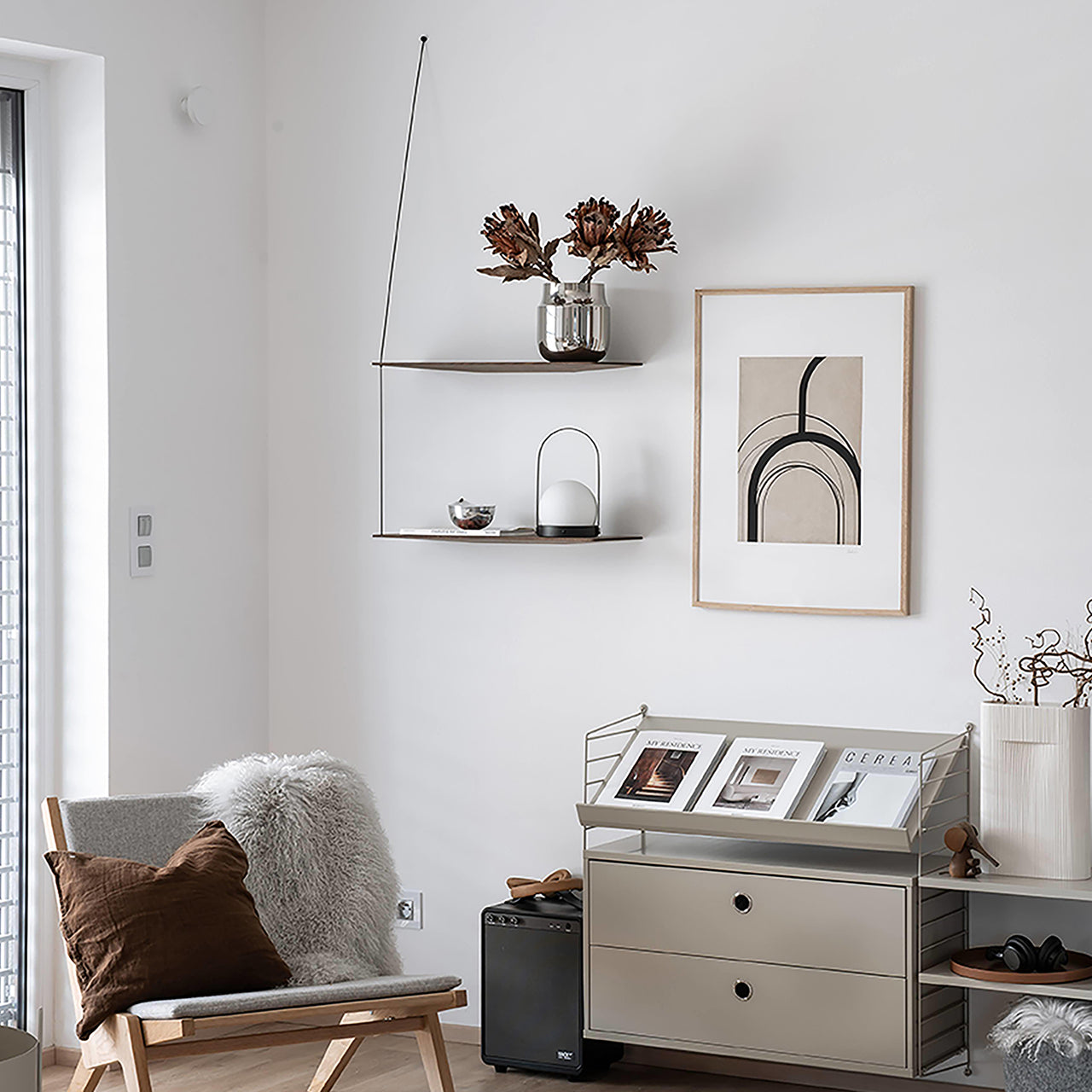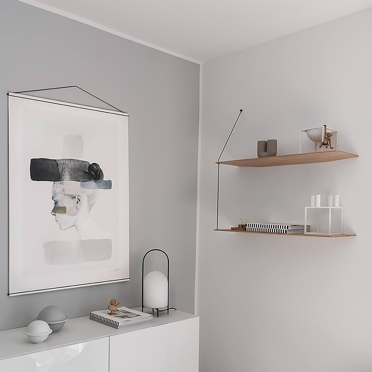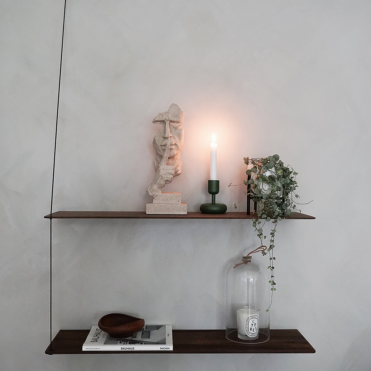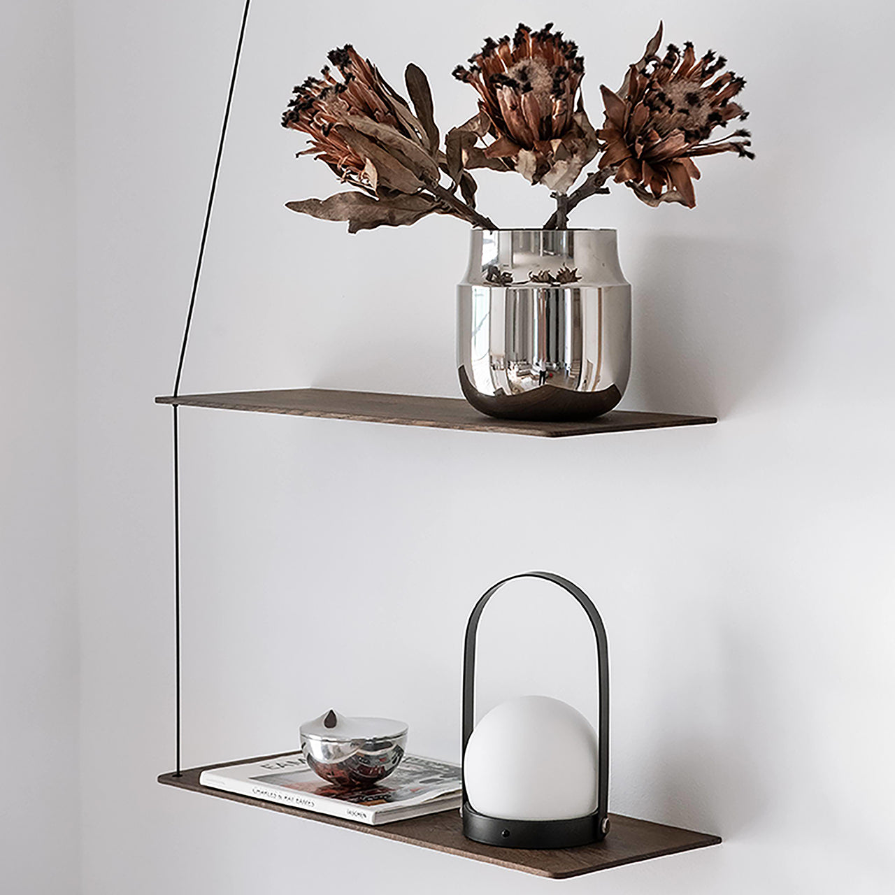 Like magic, Woud's Stedge shelving system appears to be held in place by a single cord. This minimalist sleight-of-hand from young German designer Leonard Aldenhoff reveals itself as shelves attached to a wall with screws and connecting metal wires. Light and airy in concept, Stedge comes with 2 slim oak shelves and can be extended with extra shelves purchased separately