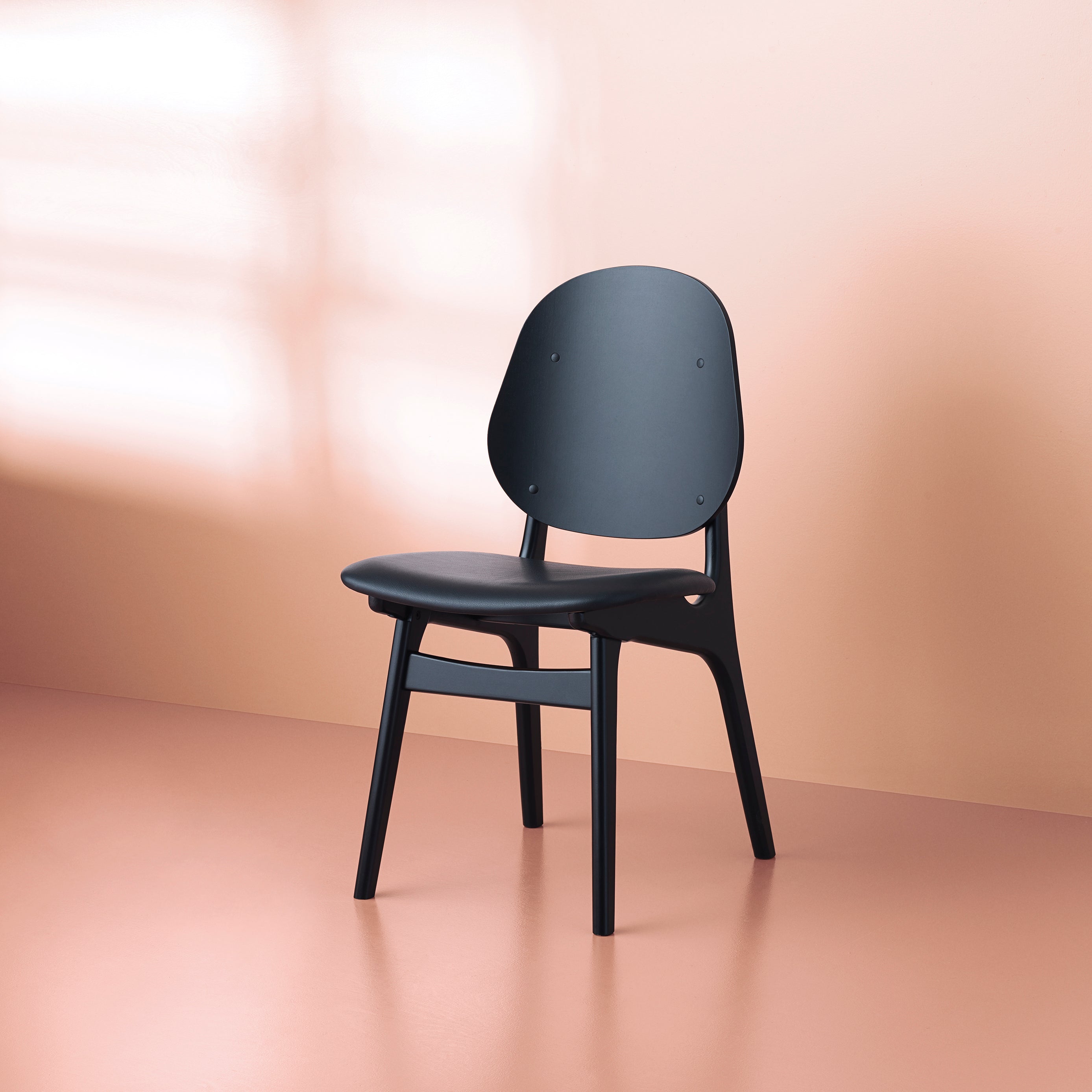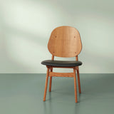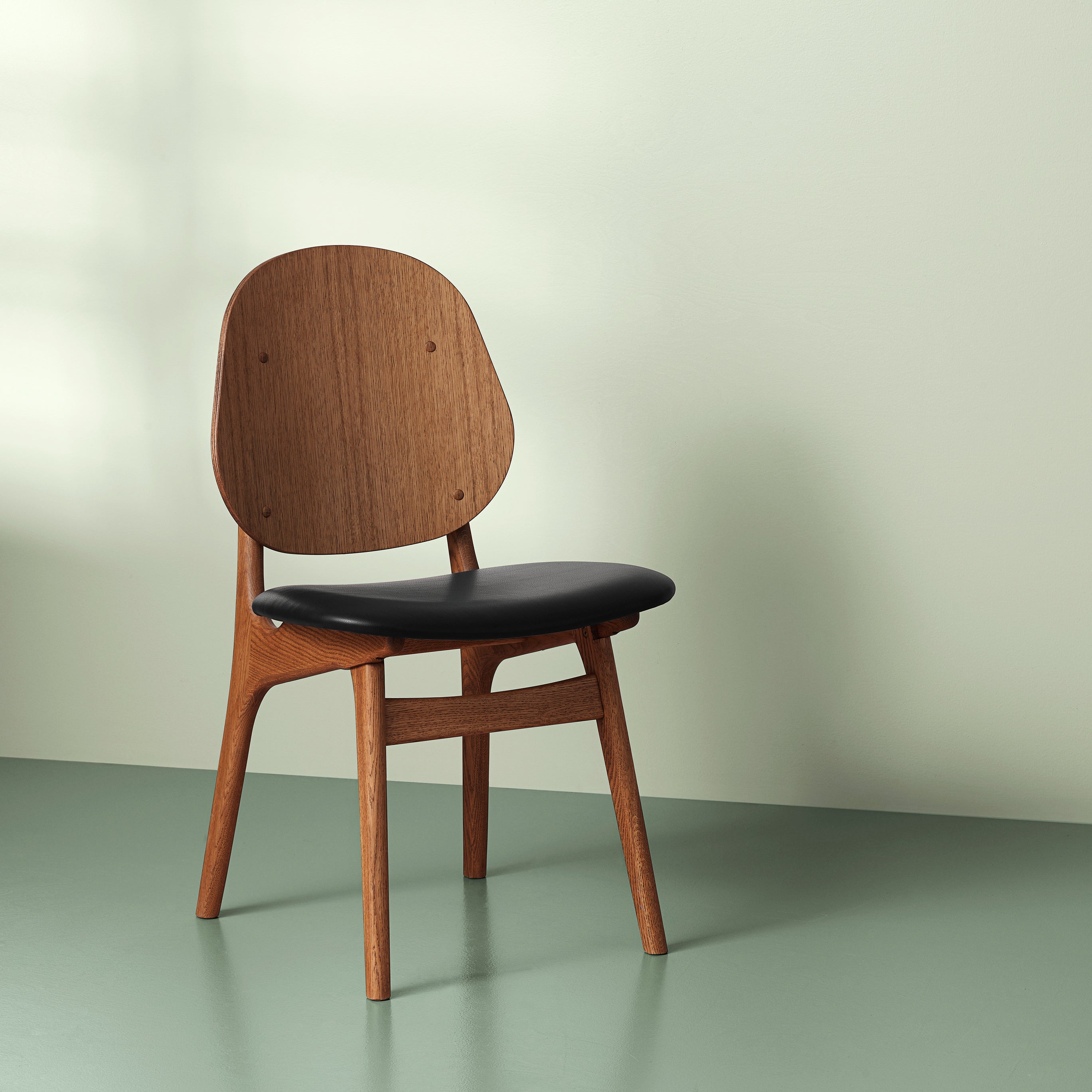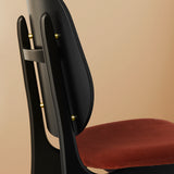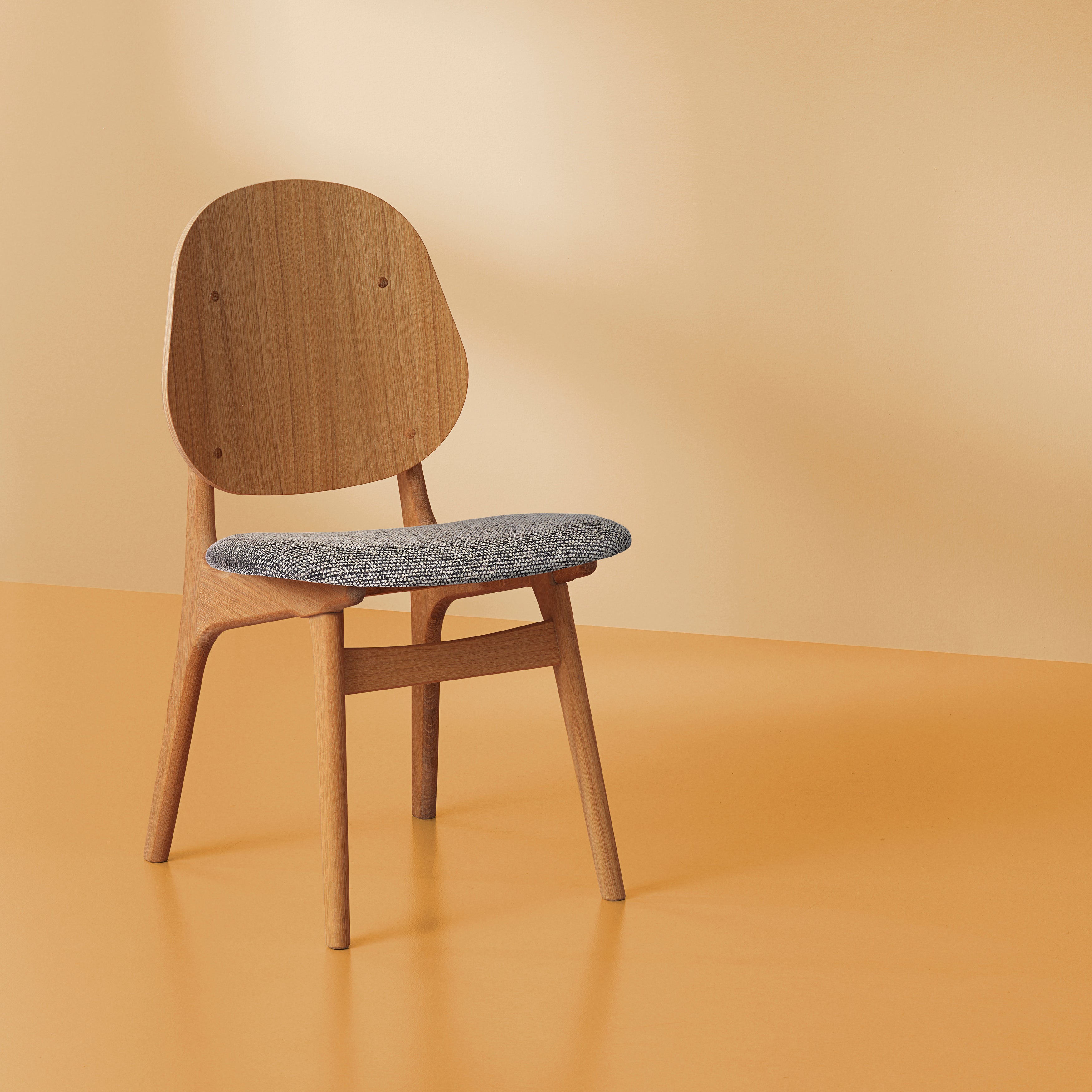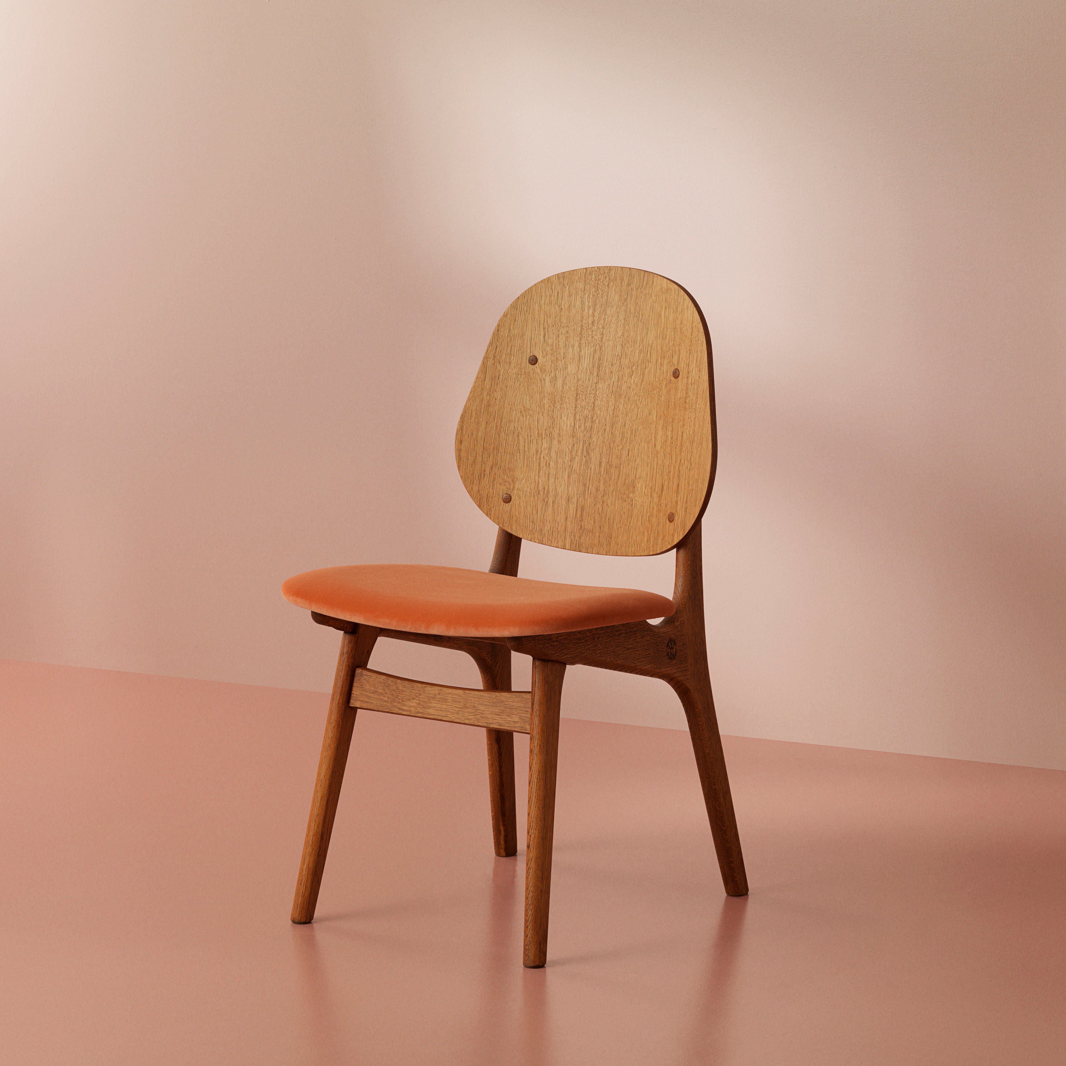 The Noble Dining Chair is a reintroduction of Arne Hovmand-Olsen's original 1950s design, capturing the subtle elegance of mid-century craftsmanship. Its gently curved backrest flows seamlessly into the armrests. Brass details accent the frame, adding a refined touch to the oak or beech wood construction. Its ergonomic design ensures long-lasting comfort, making it perfect for lingering dinners and conversation. Suitable for both formal dining rooms and relaxed interiors.