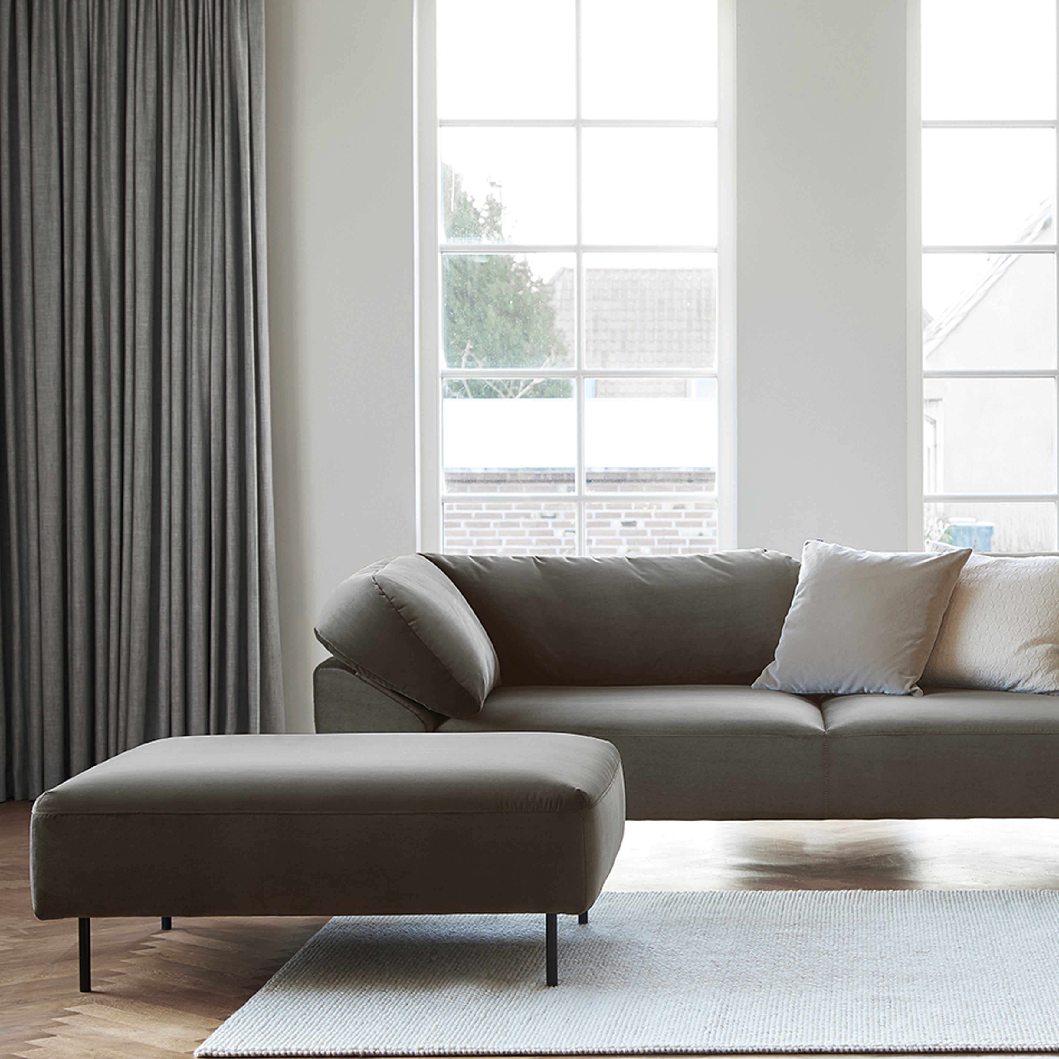 Cologne-based German designer Meike Harde adds a generously proportioned ottoman to complement her Collar range. Deeply cushioned, it matches the voluminous proportions of the collection’s sofas and is available in the same wide choice of fabric selections. With its minimalist metal legs as a counterpoint, it melds expansive comfort with a contemporary attitude.