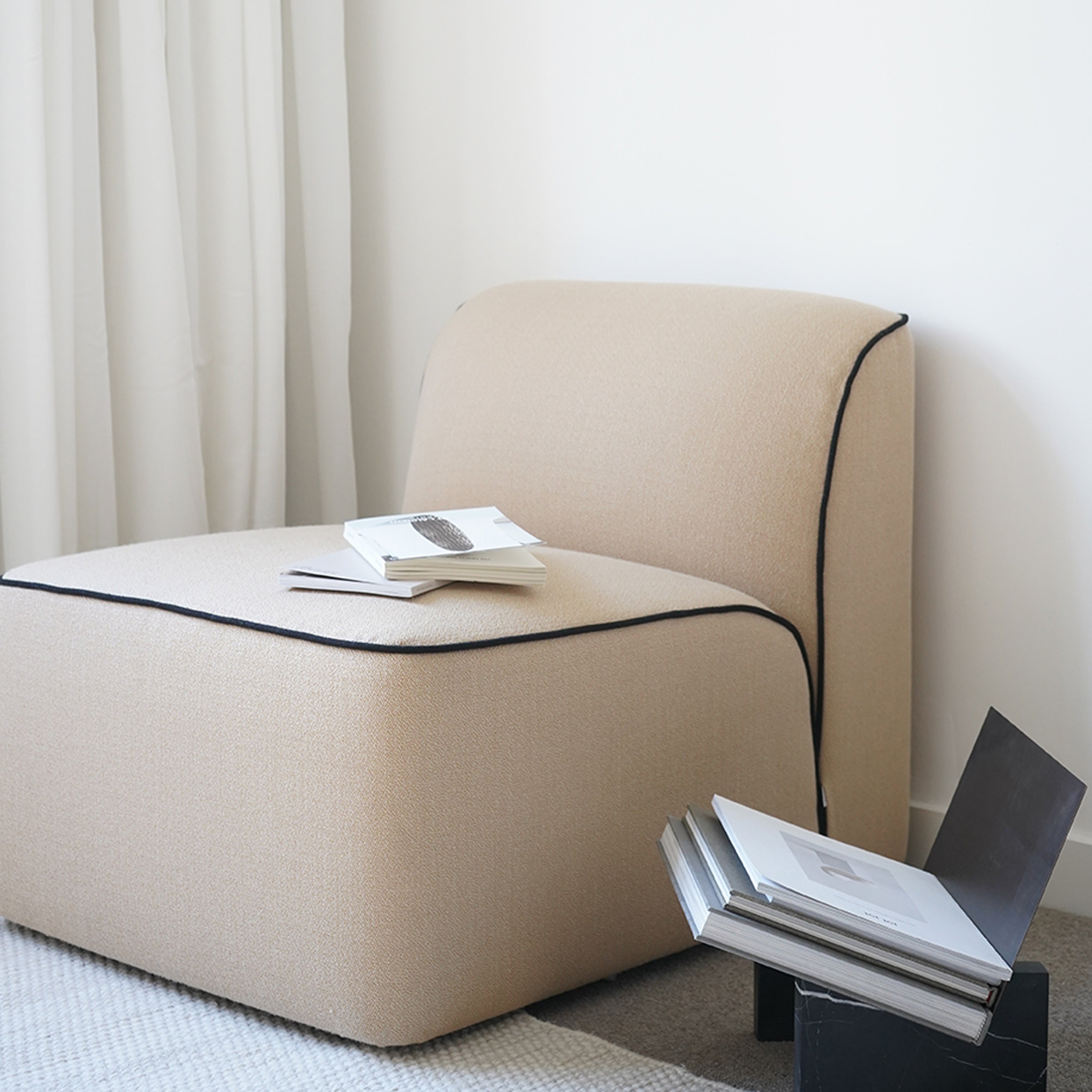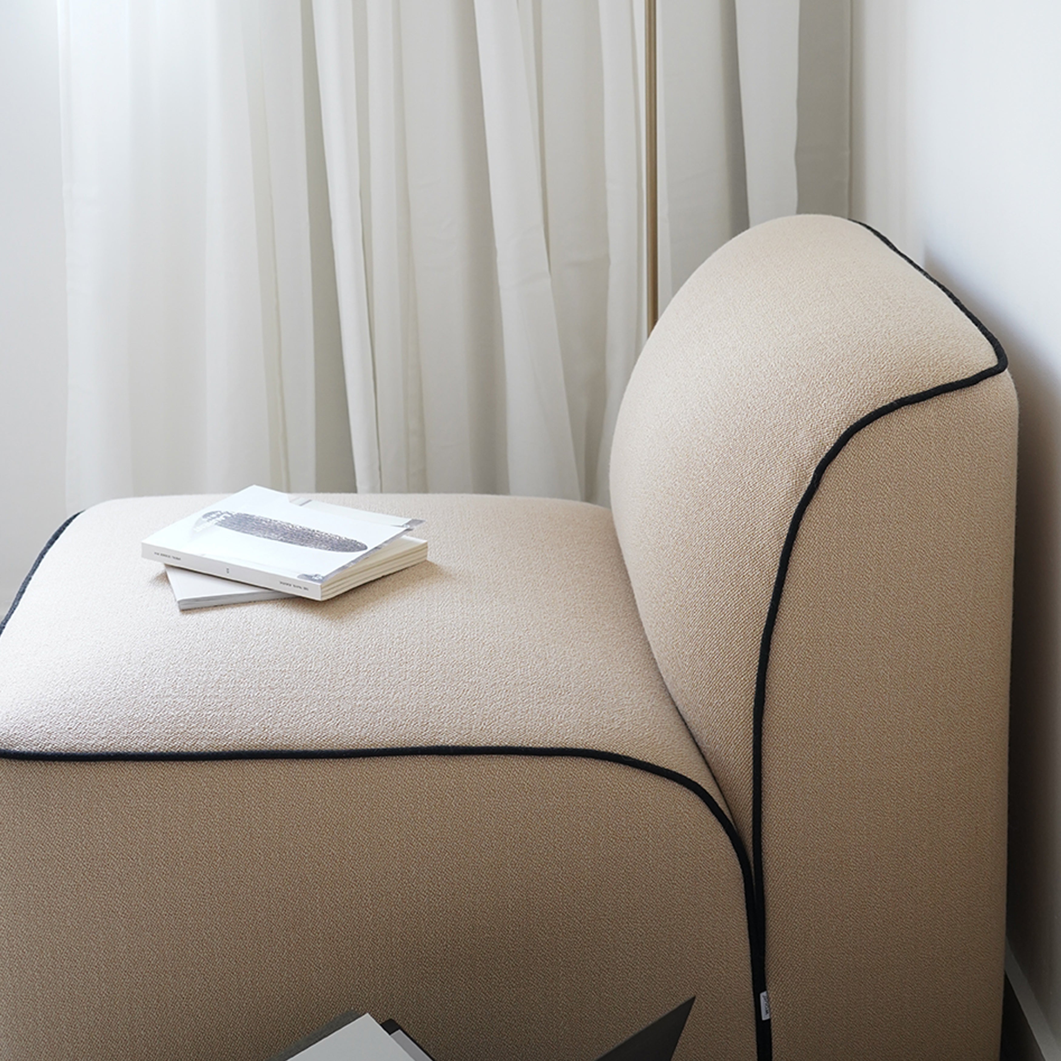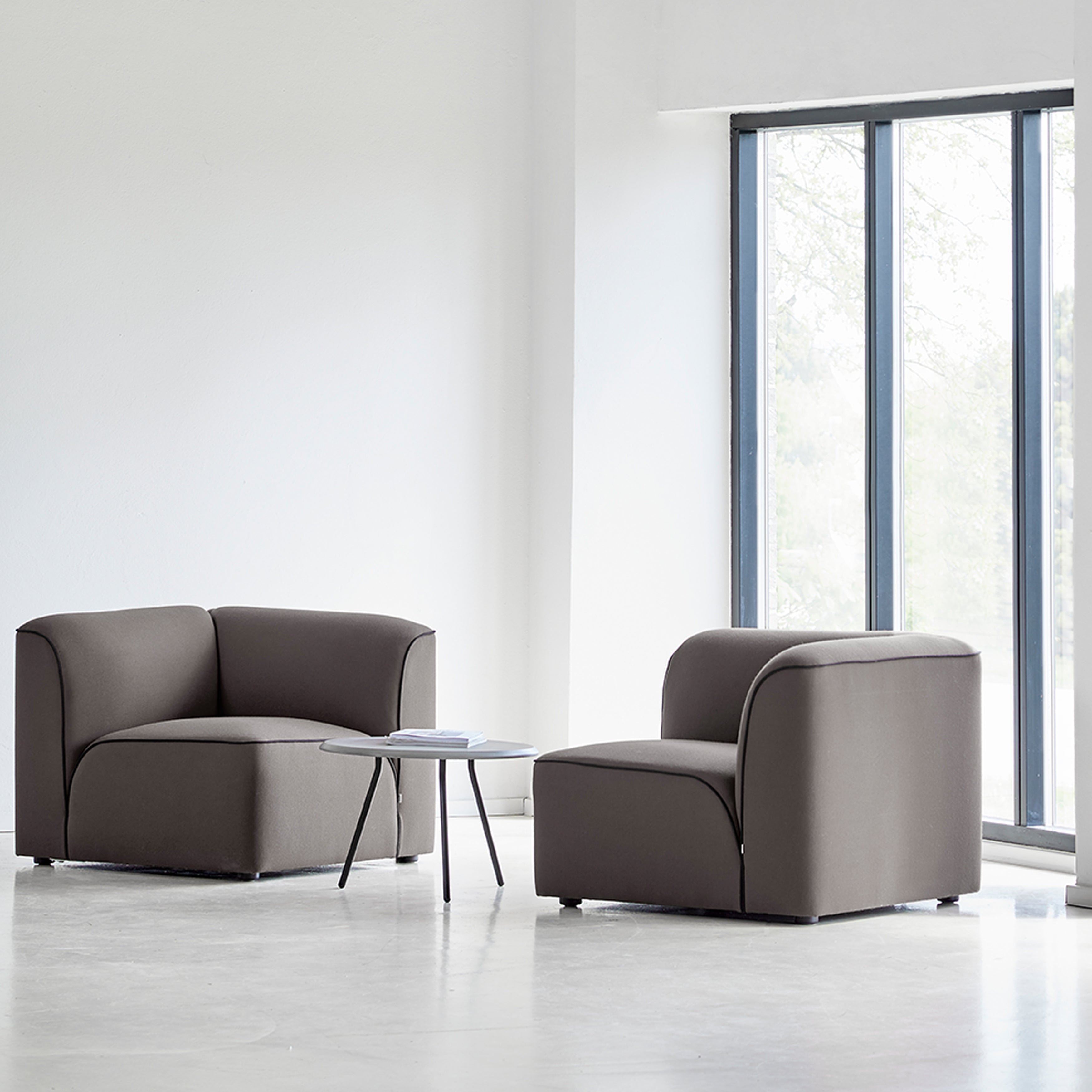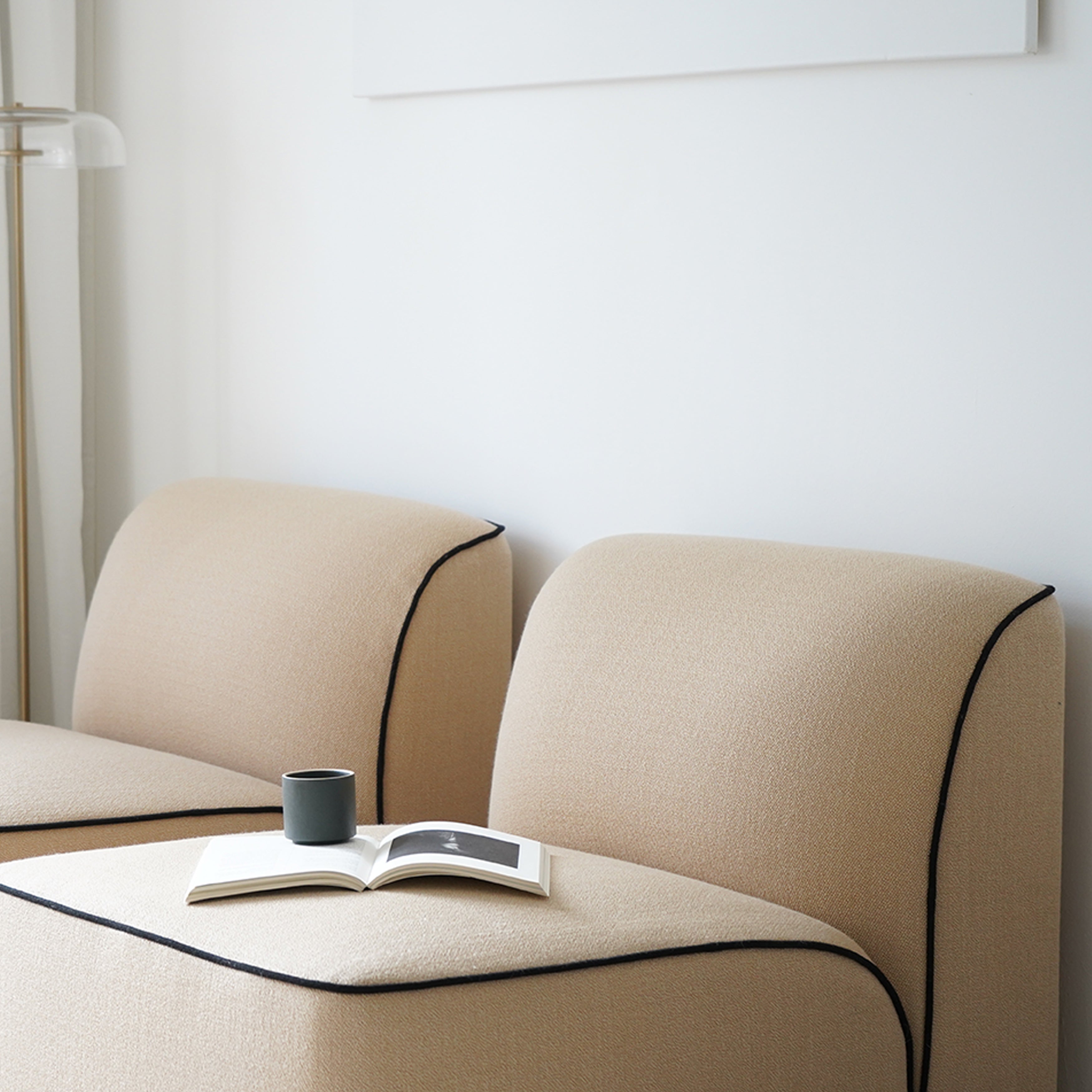 With the shapes of vegetation and blooming flowers as fodder, Spanish design studio Yonoh conceives a modular sofa series with the outlines of a petal traced in black piping. Softly shaped, Flora comprises 4 different units—2 corner pieces and larger and smaller middle modules. The resulting flexibility of designers Clara del Portillo’s and Alex Selma’s scheme allows for a nearly unlimited number of custom arrangements.