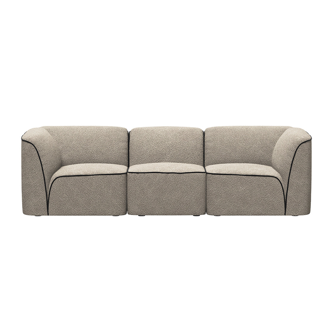 With the comfort of a standard sofa delivered in space-accommodating proportions, Flora adds a 2.5-seater version with its signature lounge-like lower backrest and deep seat. Valencia design studio Yonoh took inspiration for the rounding cushioning from the way flower petals grow, adding elegant black piping to make a visual connection.
