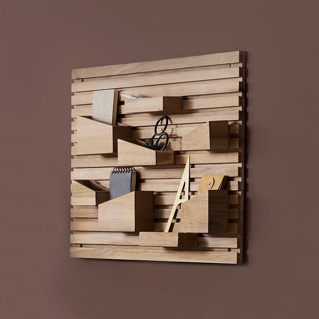 You'd hardly want to call this handsome wall piece an organizer given the usual pedestrian nature of those storage aids. Input, in rich natural oak, is a flexible system with movable boxes in varied shapes and sizes to hold all those random bits and bobs at home or in the office. Graphic and strikingly angular, it represents the inventive spirit and focus on craftsmanship of its Danish designers, Anne Holm and Sigrid Smetana.