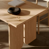 With understated elegance and structural clarity, the Woud Kimono Dining Table by Magnus Pettersen reinterprets Japanese craftsmanship through a lens of Scandinavian simplicity. Its clean oak tabletop is supported by gently inward-curving legs that evoke the fold of a kimono sleeve, with a central stretcher running through each leg to highlight the beauty of honest joinery. Subtle brass-plated pins mark the corners as quiet details, while a white-pigmented lacquer preserves the natural grain of the wood. Generously proportioned with an open base, the table invites convivial dining and everyday practicality, bringing a grounded yet graceful presence to contemporary interiors.