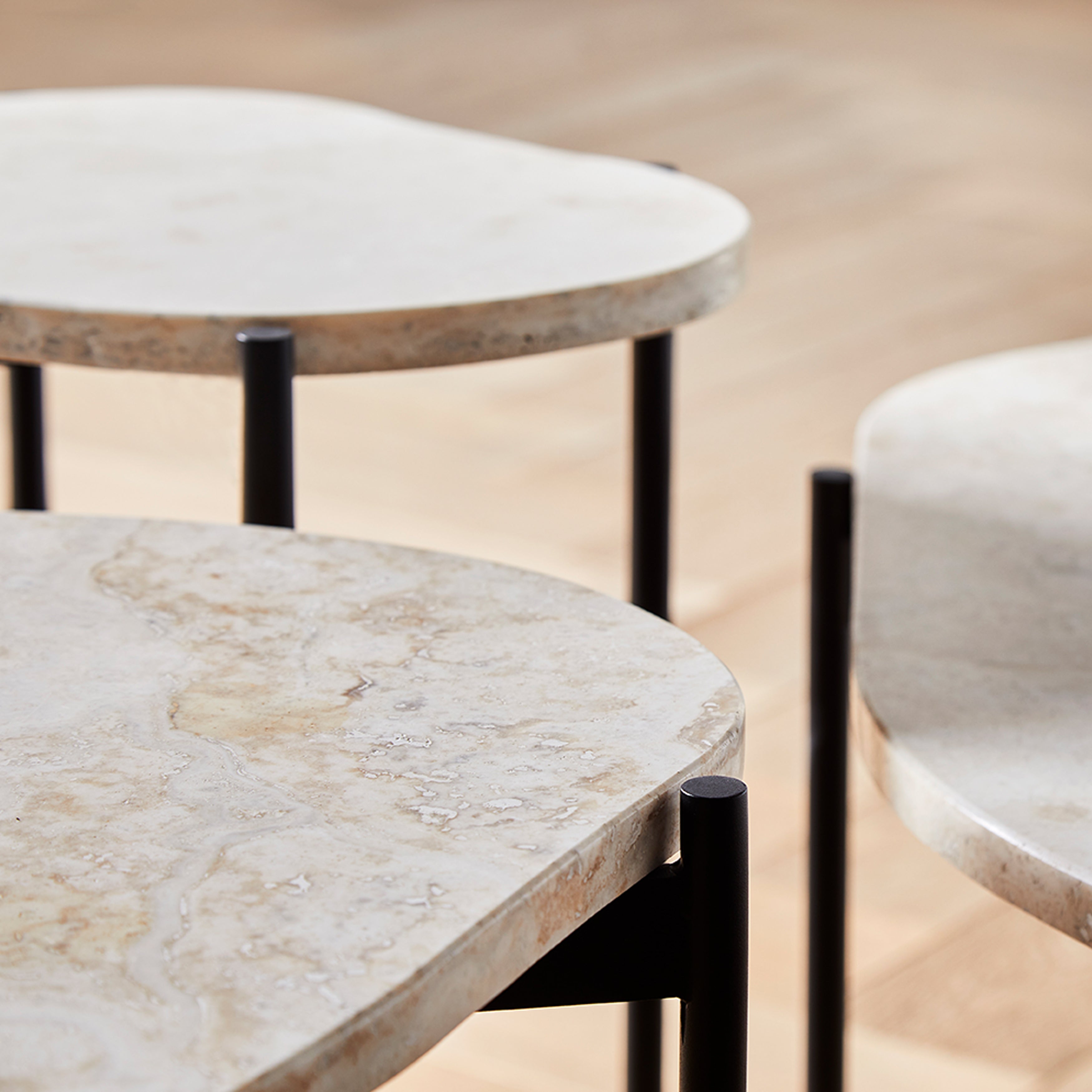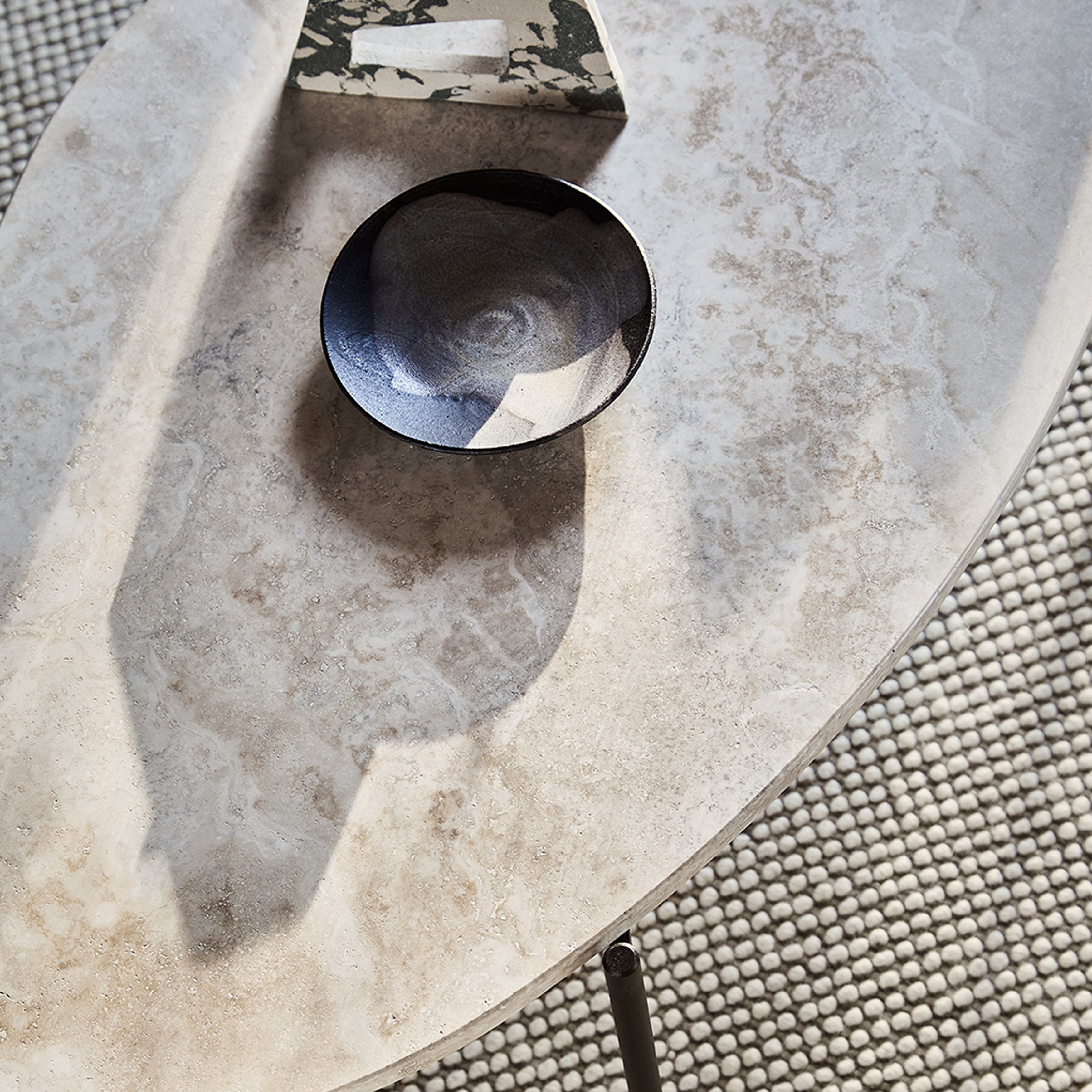 Drawing upon the Italian word for “earth,” rising German designer Agnes Morguet embraces the organic nature and muted colors of natural stone in the floating shape of La Terra’s tabletop. Made from travertine, every surface is unique as the play of colors varies, each one carefully selected to bring a sense of tranquility to any setting. With 3 different available sizes and heights, the table can be placed as a single piece or an entire landscape can be created.