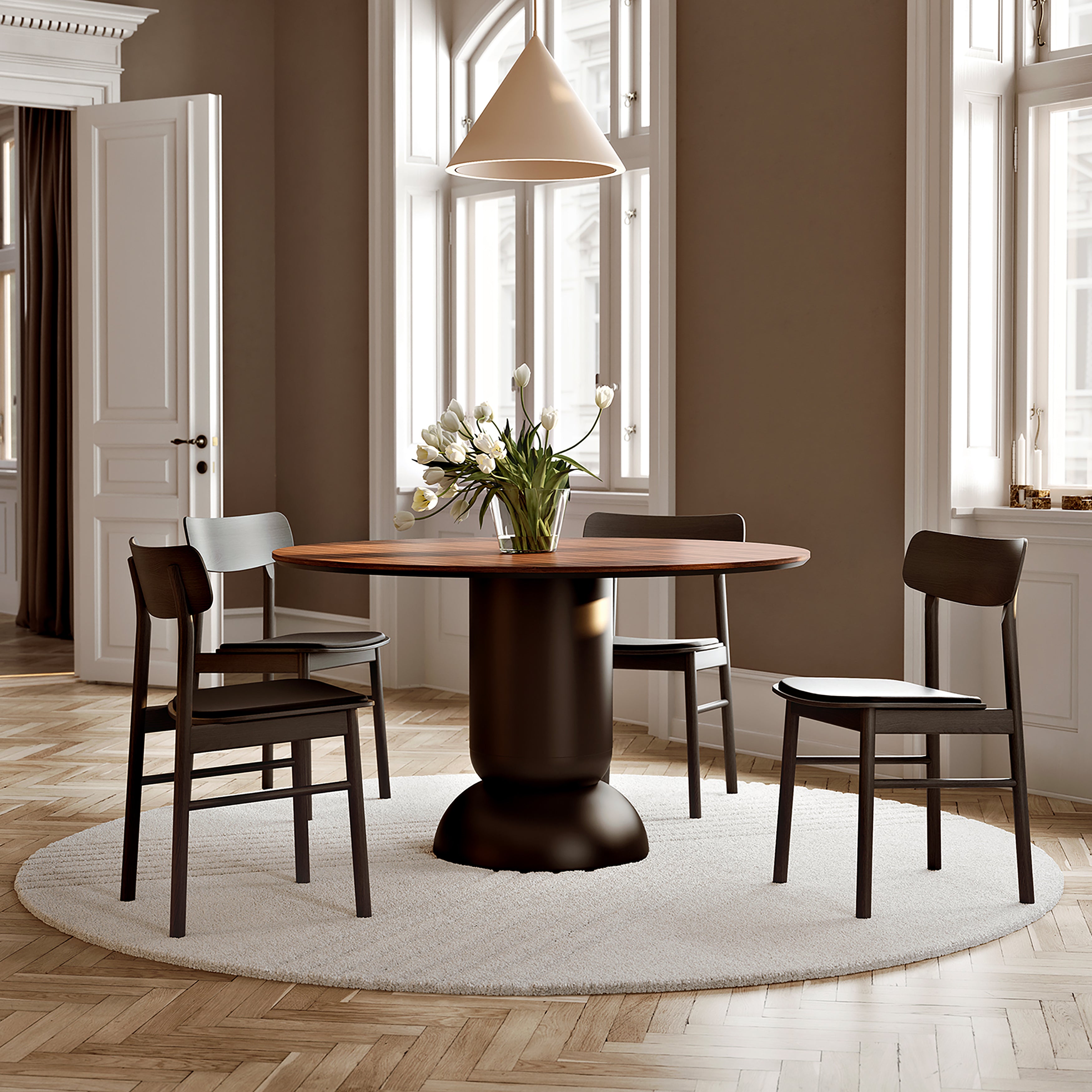 With his continuing regard for natural materials and simple aesthetics, Finnish designer Kasparov Nyman adds to his portfolio for Woud with Soma, a dining chair with gracefully rounded-off proportions. Available in either oak or ash with the option of a black or cognac leather cushion, the dining chair features a broad, supportive backrest and a similarly curved seat for extended comfort.