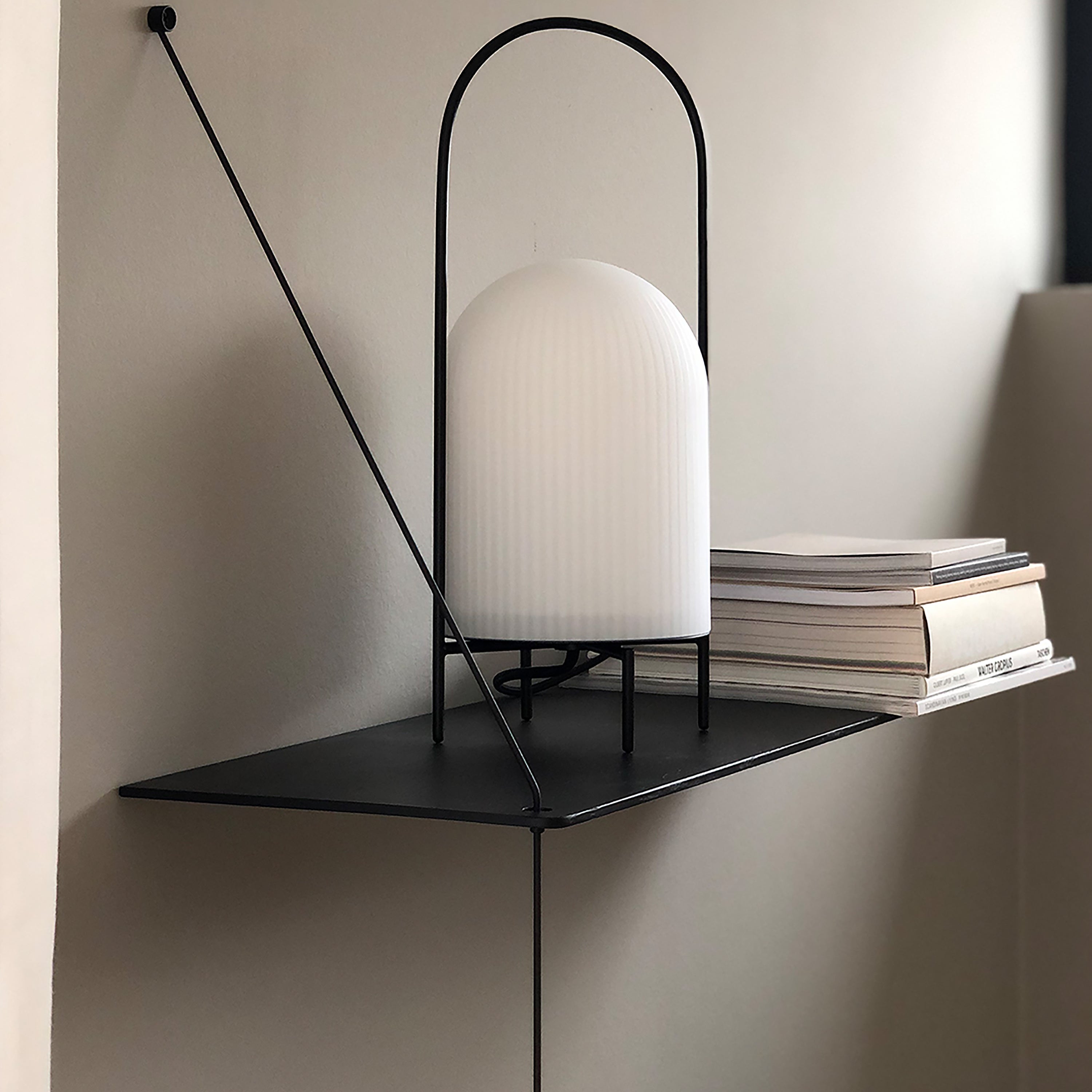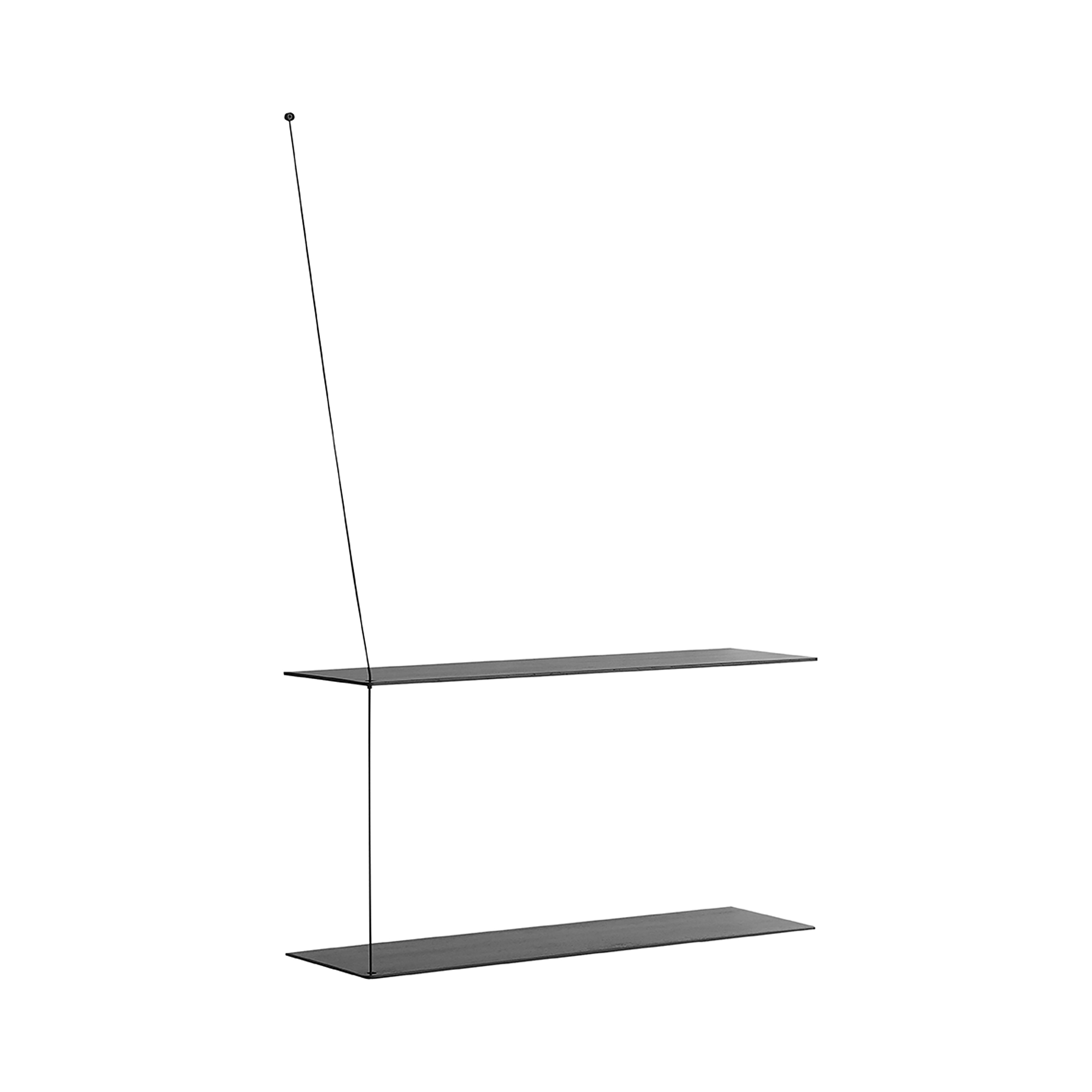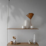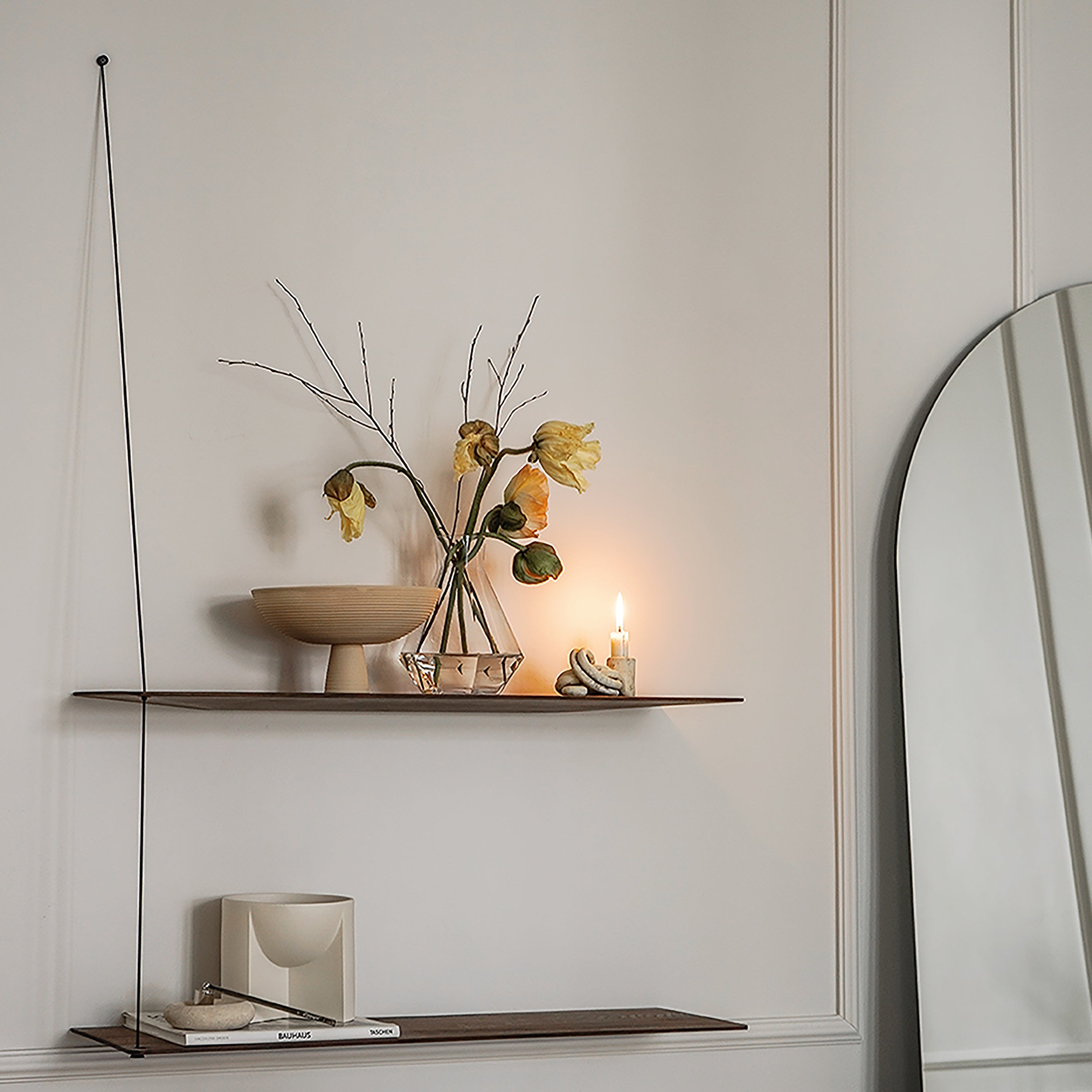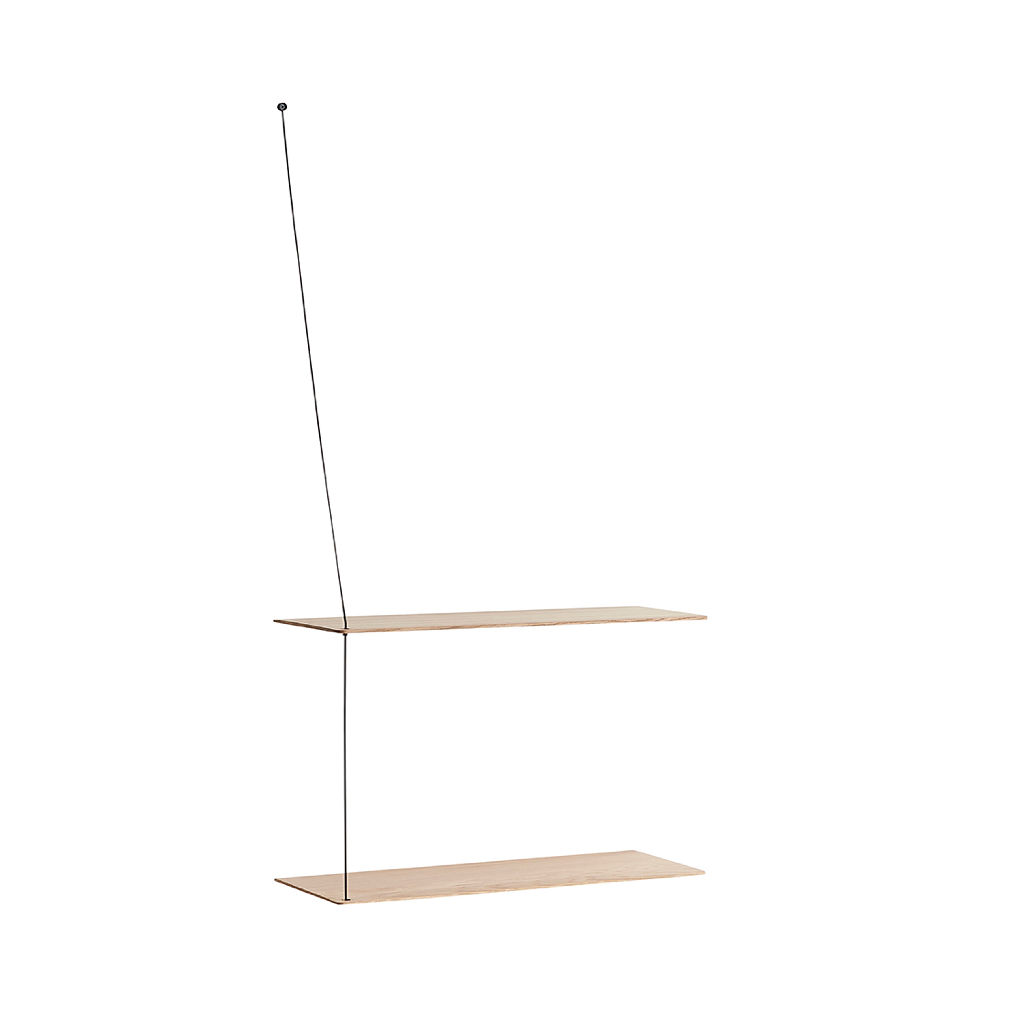 Like magic, Woud's Stedge shelving system appears to be held in place by a single cord. This minimalist sleight-of-hand from young German designer Leonard Aldenhoff reveals itself as shelves attached to a wall with screws and connecting metal wires. Light and airy in concept, Stedge comes with 2 slim oak shelves and can be extended with extra shelves purchased separately