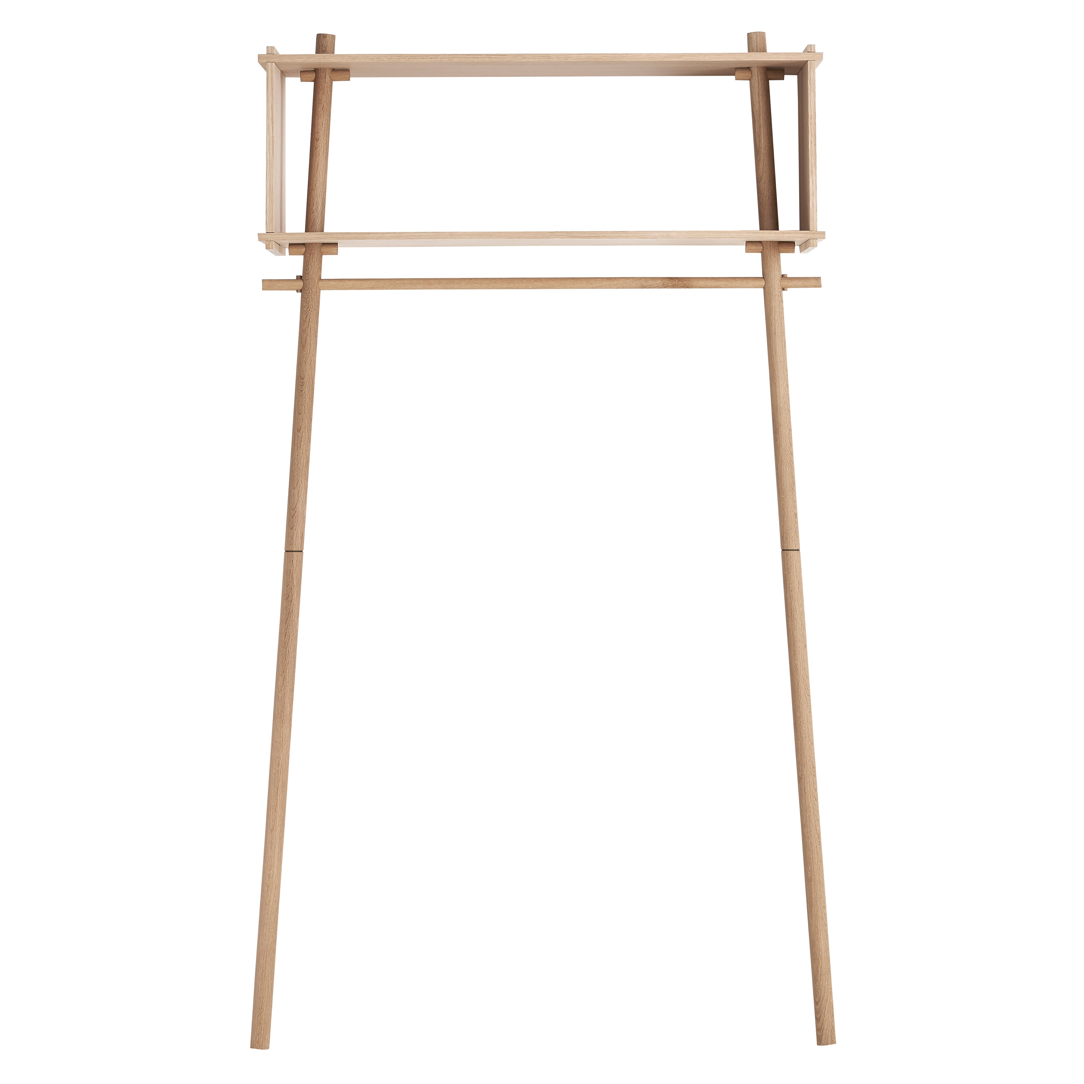 No screws, nails or glue are used—or needed—in the construction of this wood storage unit, which hews to its creator's goal to elicit "a little 'aha' moment of childish wonder and joy." The thoughtfully considered framework belies the charmingly naif design of Töjbox, which leans against a wall and takes up very little depth in a room (though not required, screws for wall-mounting are included). Put it to work in a hallway, bedroom or the kid's quarters. A bar allows for hanging jackets and other clothes, or sling blankets over it. Inside or on top of the box, stack folded sweaters, hats or position favorite tchotchkes. Studio Made by Michael created the storage solution for his fellow Danes at Woud, even ensuring assembly is child's play.
