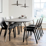 Inspired by branches rising to the sky, the legs of French-American designer Elisabeth Hertzfeld’s dining table separate like a bundle of stems as they meet the tabletop. In sleek painted metal, Tree’s tubular structure complements the matte surface in a resilient high-tech laminate. In a choice of beige, black or a combination of the 2 hues, the table comes in 3 gently shaped sizes—small and medium round versions and a large elliptical model.