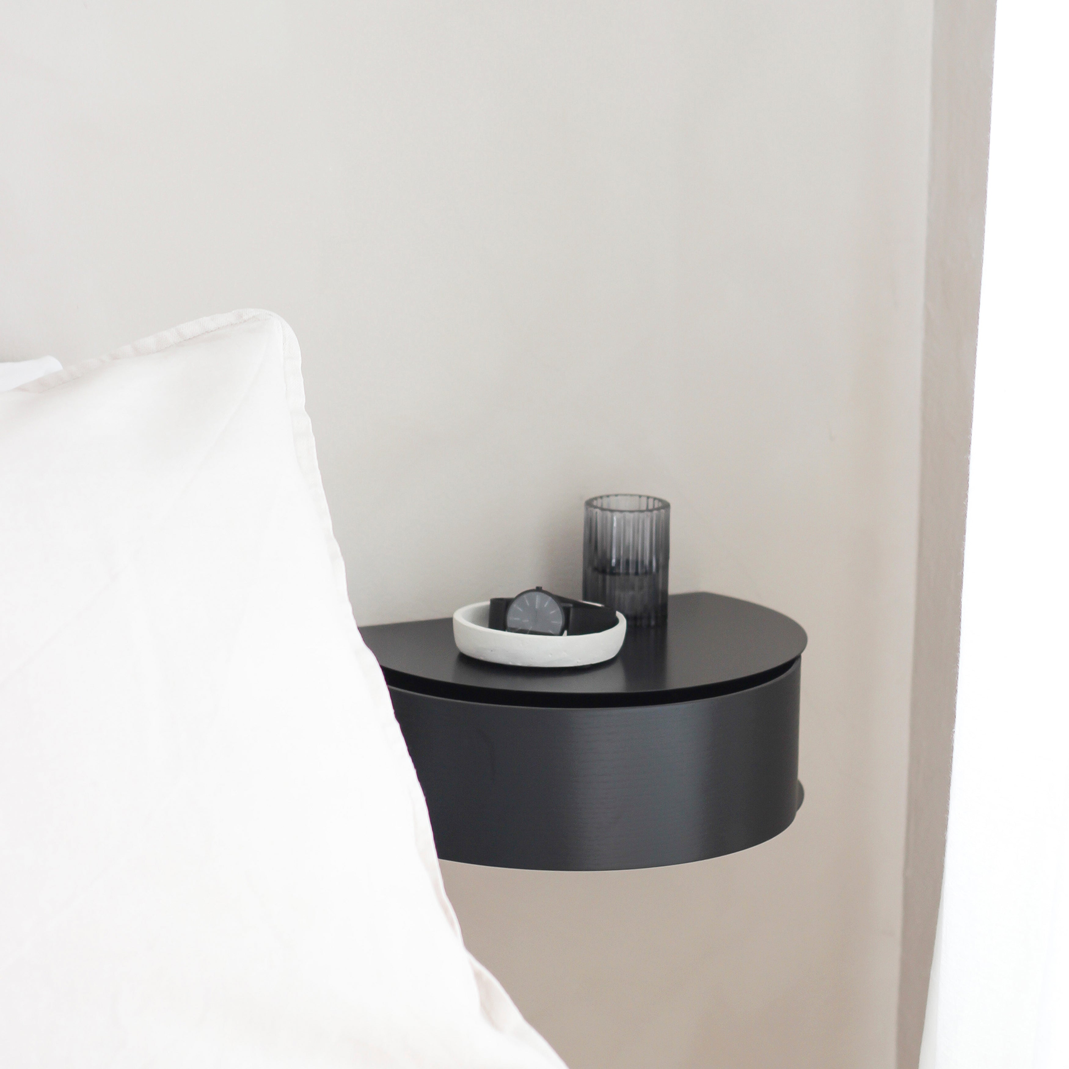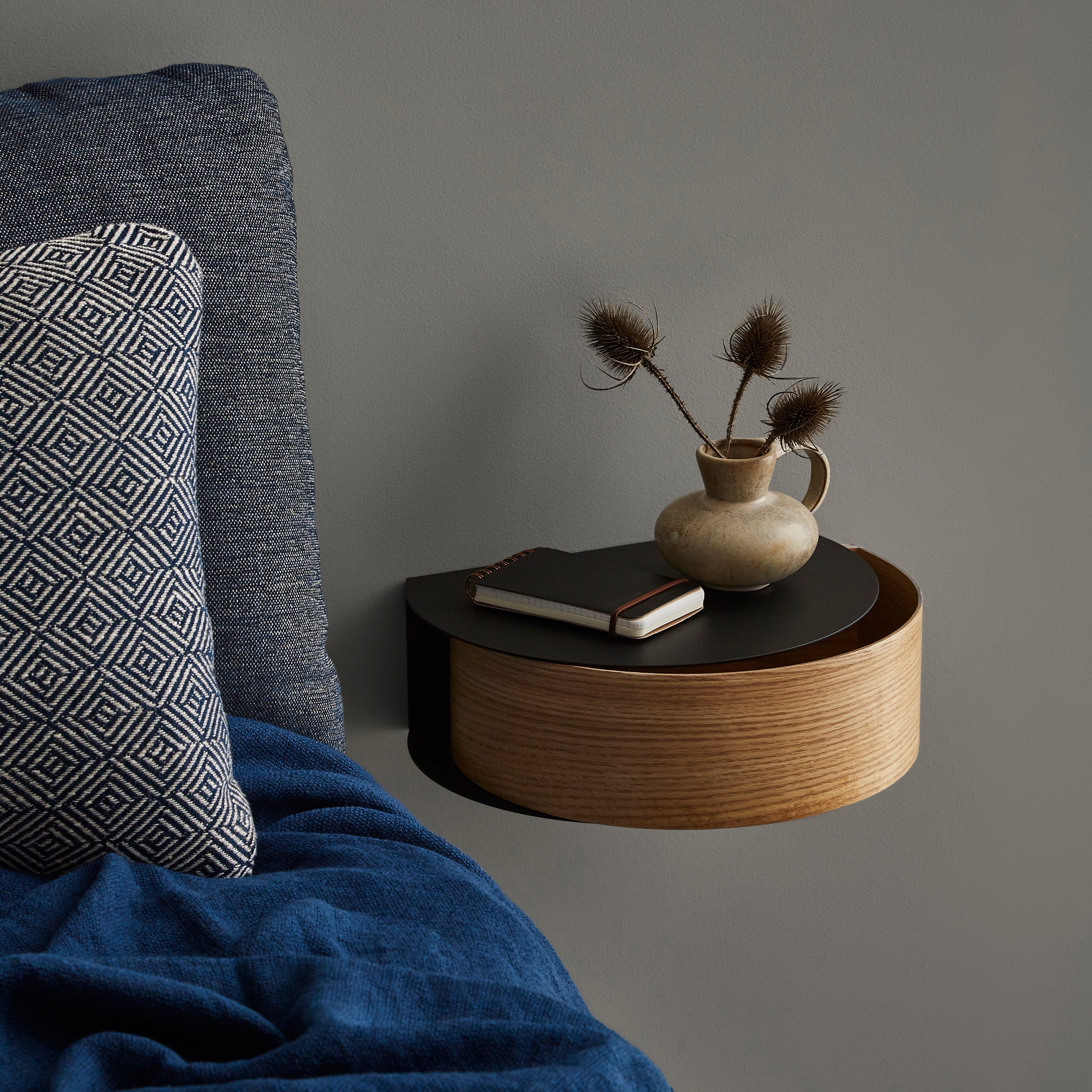 Designer Amalie Skov Rahbæk's wall-mounted shelf with a single curved magnetic drawer makes for a visually strong statement. But, as form follows function, Wallie's also eminently useful—perhaps in the entry to hold keys and other miscellanea or as a stylish night table in the bedroom. And the striking contrast of black metal and light oak give it a crisp minimalist appeal.