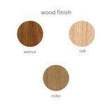 Steel, powder-coated polyester, iroko wood, fibre cement, rubber cushion, oak or walnut