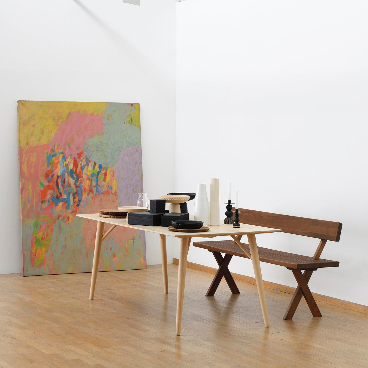 Branchmark (4) is named for the number of its conus-shaped legs that, along with the thinner branches, join the tabletop with elegant insets at the surface. Along with Stockholm architects Wingårdhs' vision, the rectangular dining table attests to Bosnian maker Zanat's artisanship, cited for cultural preservation by UNESCO. In sustainably sourced timbers and select finishes, the chamfered edge lends intriguing detail to this refined table, for both residential and commercial dining areas as well as work environs.
