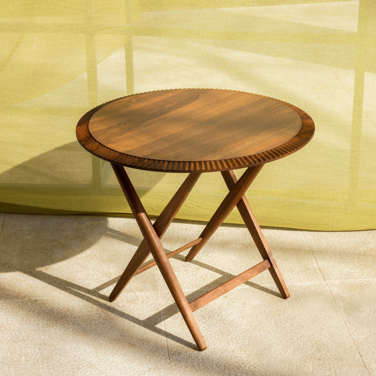 An easily foldable version adds a welcome portable option to Zanat's luxurious collection with elegant cogwheel carving around the tabletop edges. Seen from above, the pattern is reminiscent of piano keys, a modern take on the Bosnian brand's legacy of artisan carving from designers Ludovica + Roberto Palomba. Entirely fashioned in a choice of solid woods from sustainably managed forests, Piano also features X-shaped legs, beautifully crafted without any visible screws or hardware.