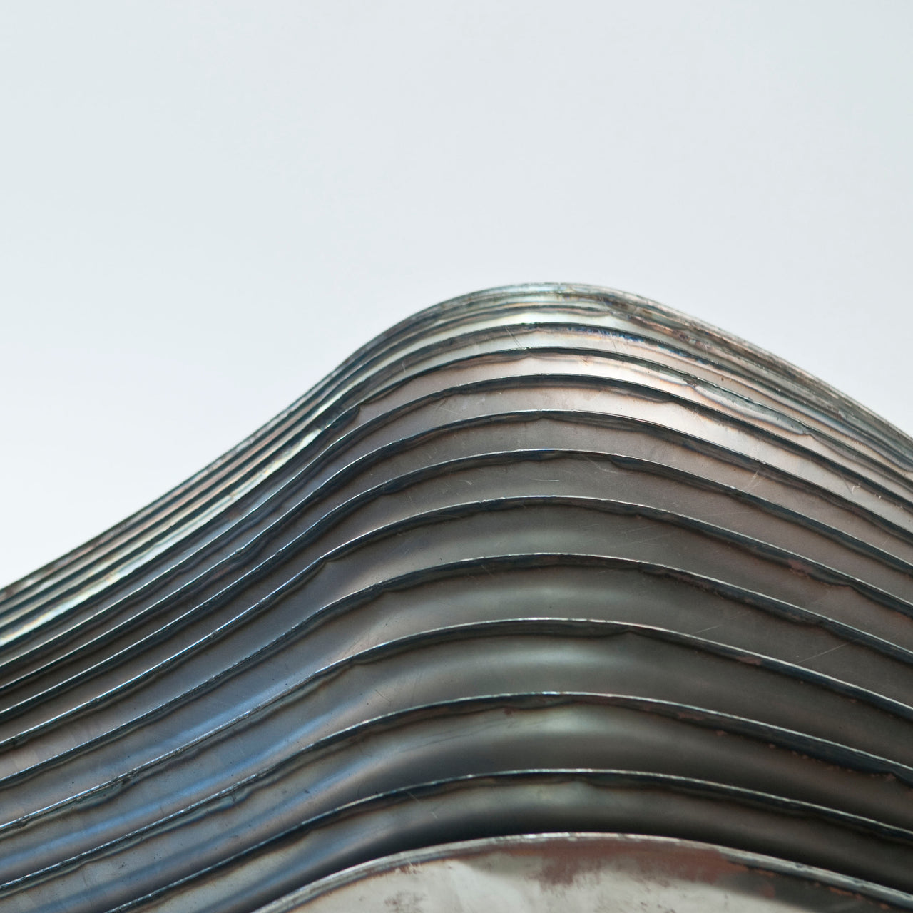 Oskar Zieta's series Steel in Rotation allows for the ultimate expression of pioneering FiDU technology and his Chaise Long is another unparalleled artistic triumph. Configured from lengths of welded steel that are inflated like a balloon using high-pressure air, it serves as both a dramatic sculpture and invitingly languid seating. In either inky carbon or silvery stainless steel finish, the chaise is also much lighter than it first appears since minimal material is needed in production—a fascinating paradox of the innovative process.