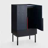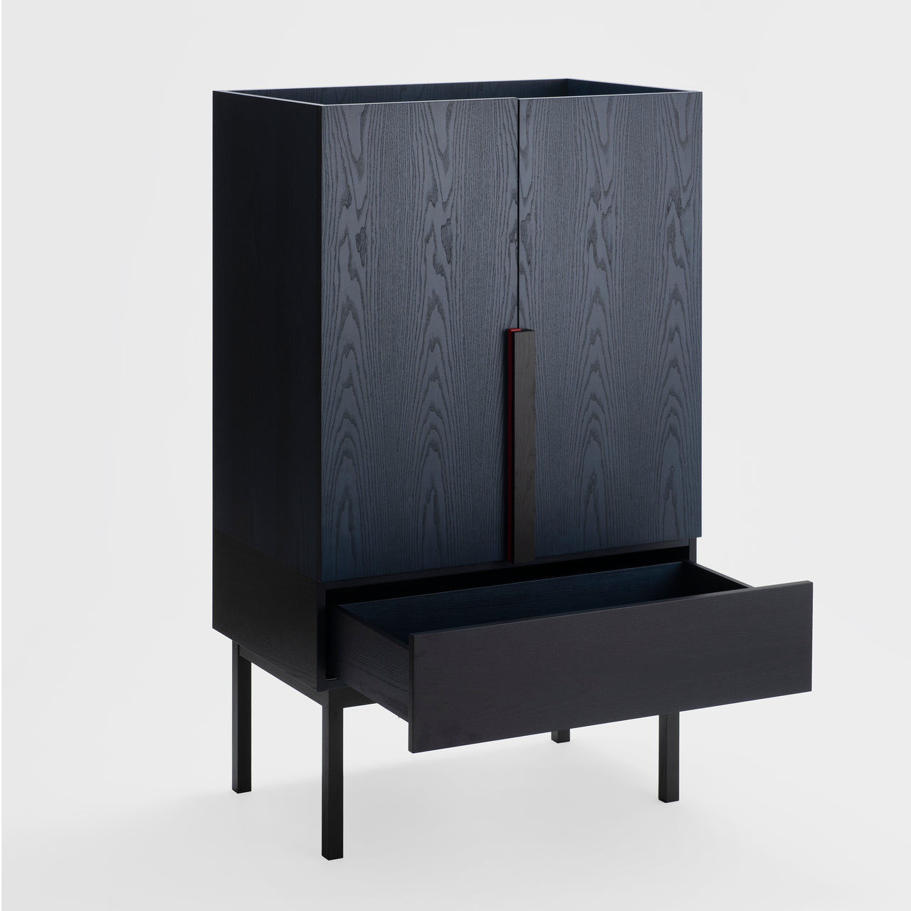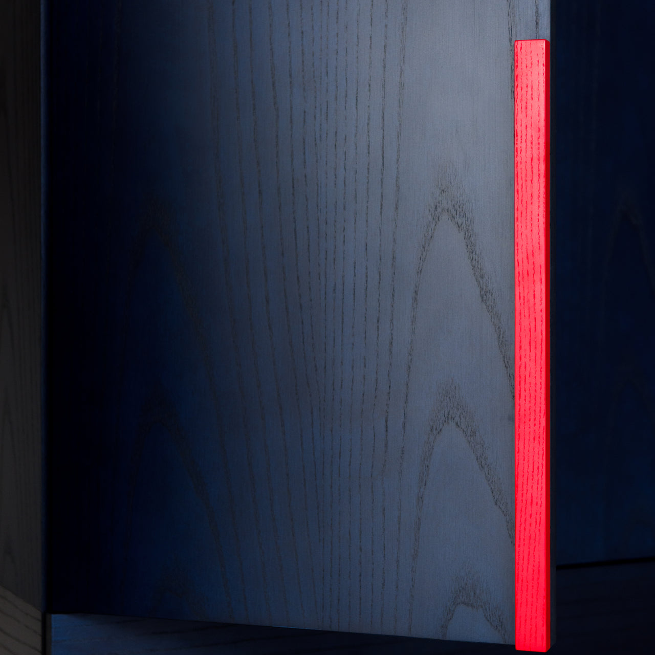 Named for Japanese indigo, Aizome Wardrobe provides ample storage for clothing and other soft-goods and includes a concealed second handle and a recessed top surface for additional items. Designer Zoe Mowat puts a modern slant on traditional Japanese colors with the cabinet’s finishes that incorporate sumi ink, red dye, and 2 shades of indigo.