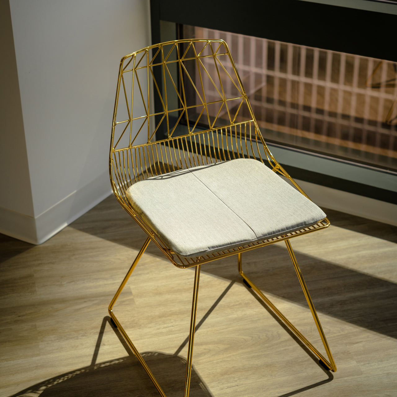 Michigan native Gaurav, formerly a designer for General Motors, values performance just as much as polish. The structural strength of each piece of furniture is contract grade, while the ergonomics and the spacing of the wires assure comfort and utility. Environmental impact is also a concern, and he envisions each piece as something built to last a lifetime, fabricated from the plentiful resource iron and sustainable woods. Though Gaurav's work draws on the legacy of modernist objects in wire, he wants "to offer something different, something edgier."