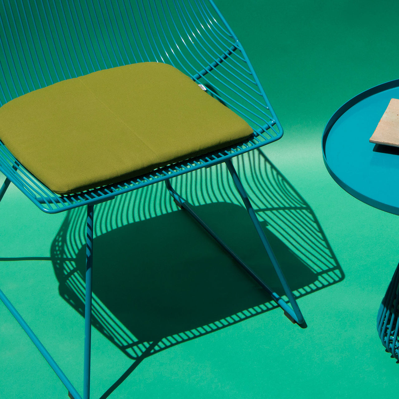 Around the Bend is a bright and happy place to be when speaking of the cool iron wire furniture from Los Angeles' own Bend Goods. In true Southern Cali style, these corrosion-resistant pieces with their pop of powder-coat color can easily meander from indoors to outside. Sculptor, designer and entrepreneur Gaurav Nanda perfected the signature process he calls "bending"—shaping and spot welding the wire by hand—to achieve intricate patterns in Bend's furniture, lighting and accessories.