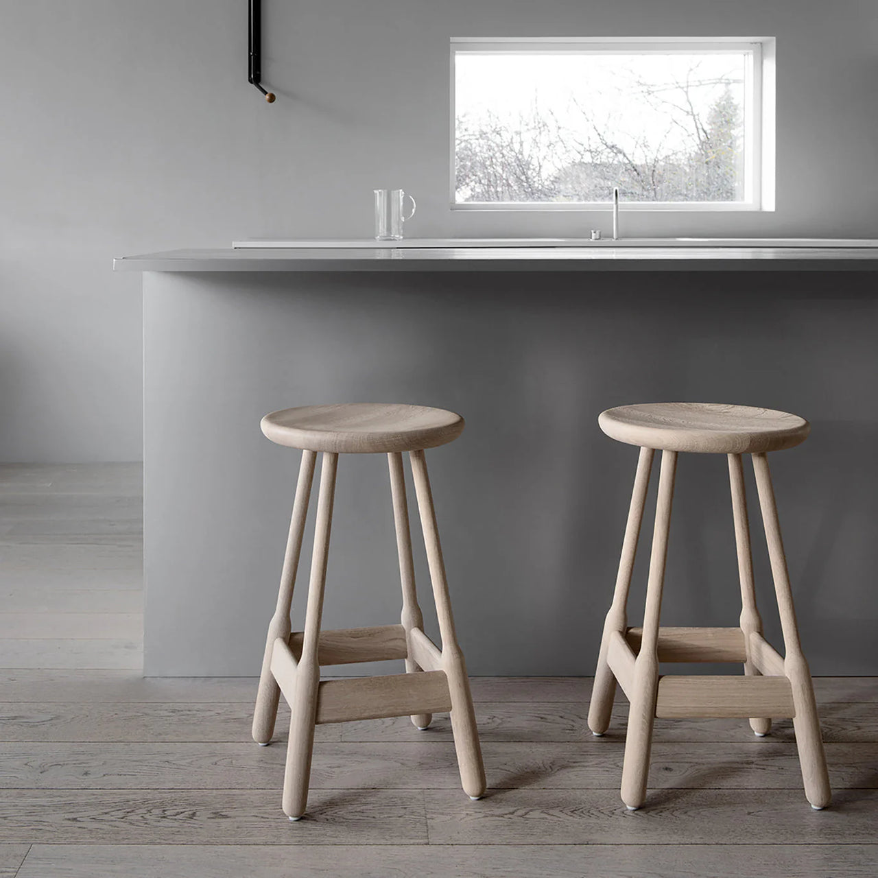 With a distinctive flaring of its solid-wood legs toward the footrest, Albert rejiggers the classic British pub stool. A contoured seat displays admirable heft and the range of available finishes in either oak or beech include both woodgrain and lacquer options. The exceptionally sturdy seating is a prime example of Massproductions' commitment to efficient, sustainable and high-quality production, or—as the Stockholm-based company puts it—"to make real products for the real world, developed at our own pace.