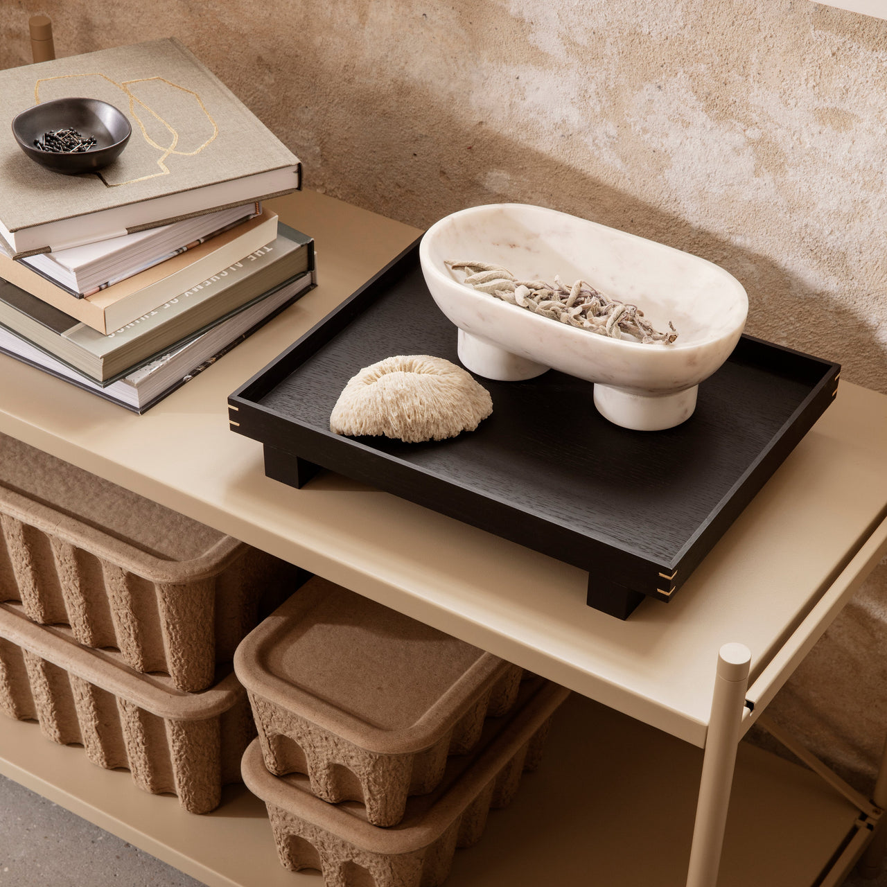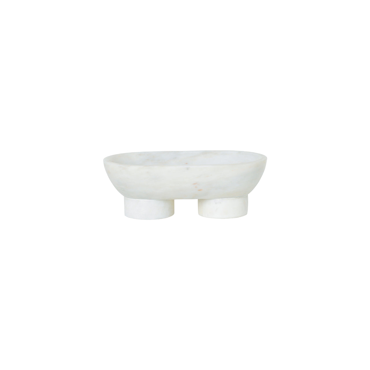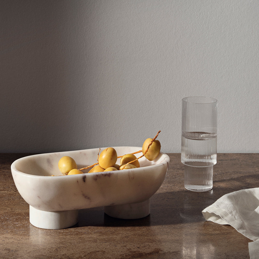 Alza brings a welcome variation on a classic bowl with its oval shape and dual footed base. Fashioned in exquisite black or white Indian marble, it’s striking as a table centerpiece or to hold objects on a wall shelf or sideboard. As with all marble, slight variations in the natural stone make each piece unique.