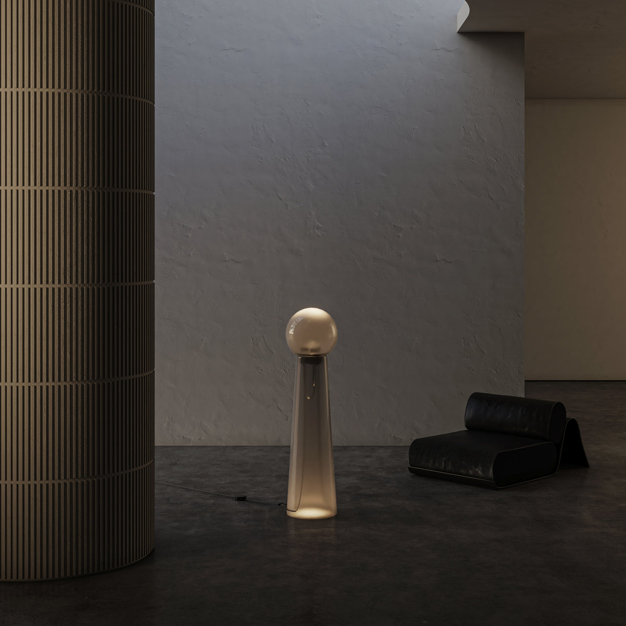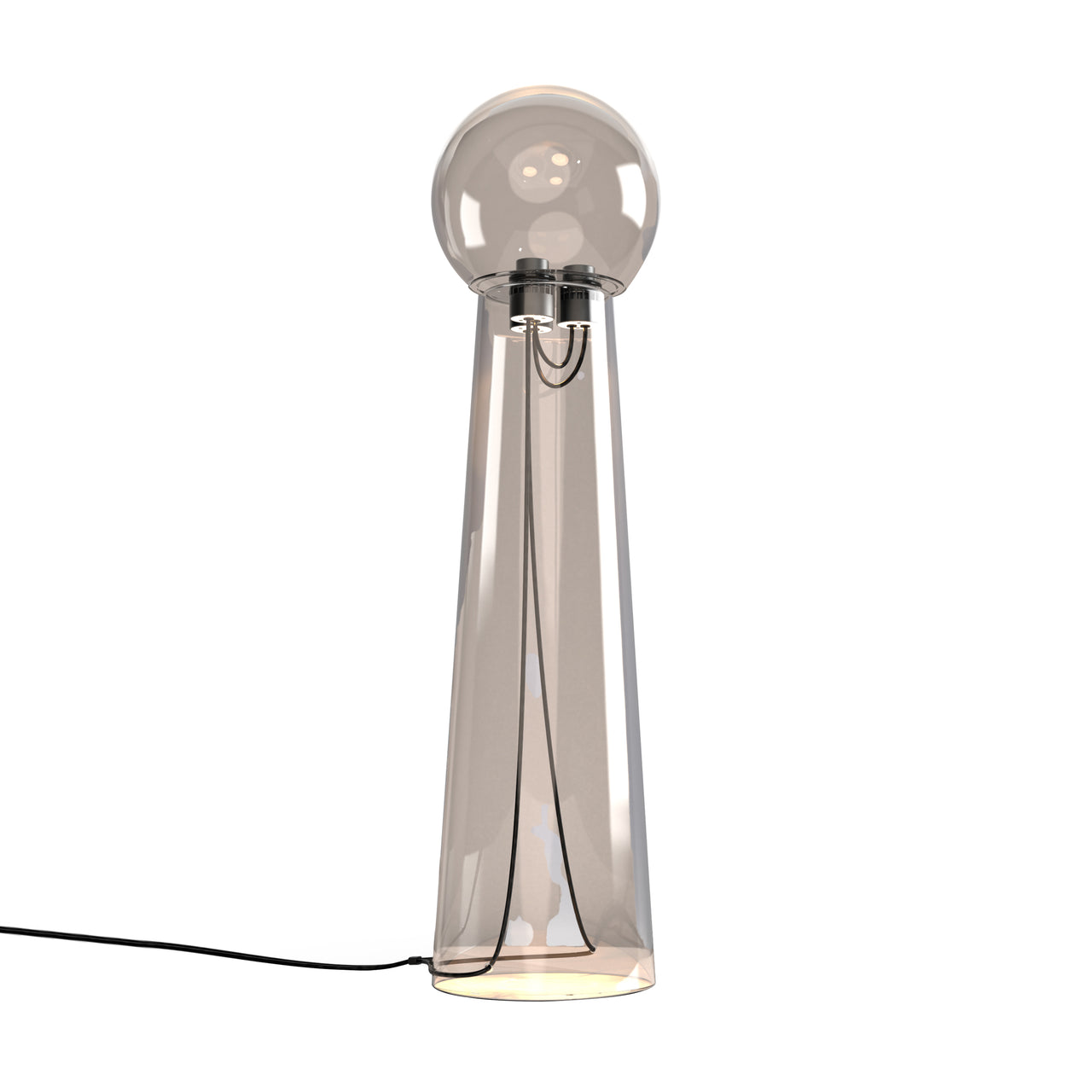 Created in collaboration with Verre d'Onge, this masterful blend of glass and light pushes the glassblowers art to the max. Its elegant geometry features a unique two-toned fade between opaque and transparent glass, creating a floating effect. The lamp's upper diffuser refracts light from an integrated LED: It includes three high-quality bidirectional light engines with a high CRI and dim-to-warm functionality, ranging from 3000K to 2200K. The Gigi Grande also features an integrated touch dimmer switch.